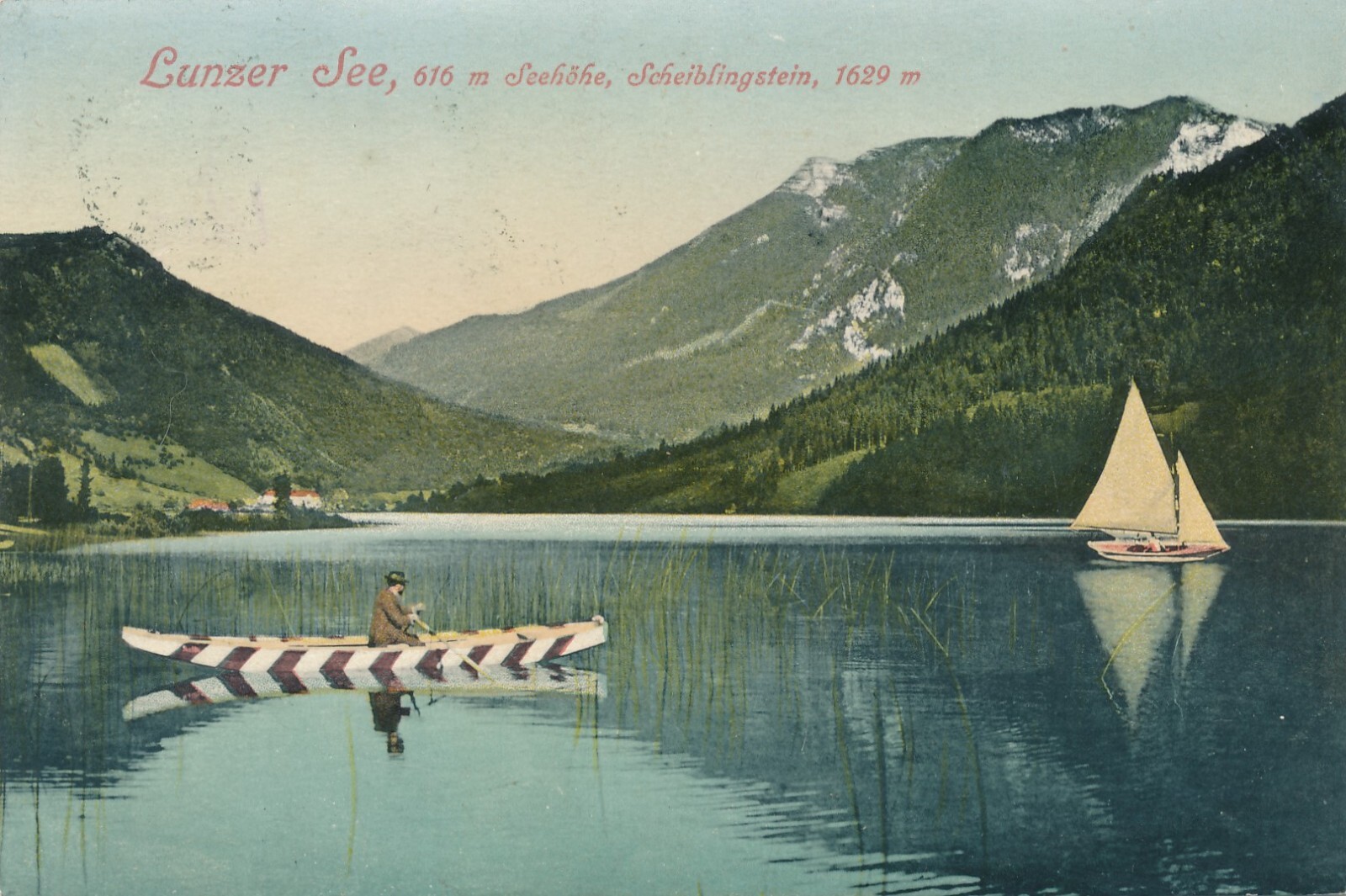 AK vom Lunzer See mit Boot Niederösterreich Ansichtskarte (8356)