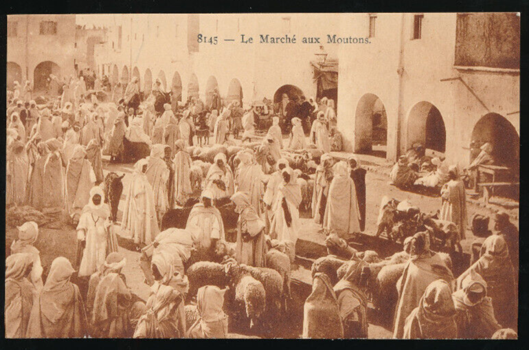 AK vom Schafmarkt mit Menschen und Schafen Afrika (677)