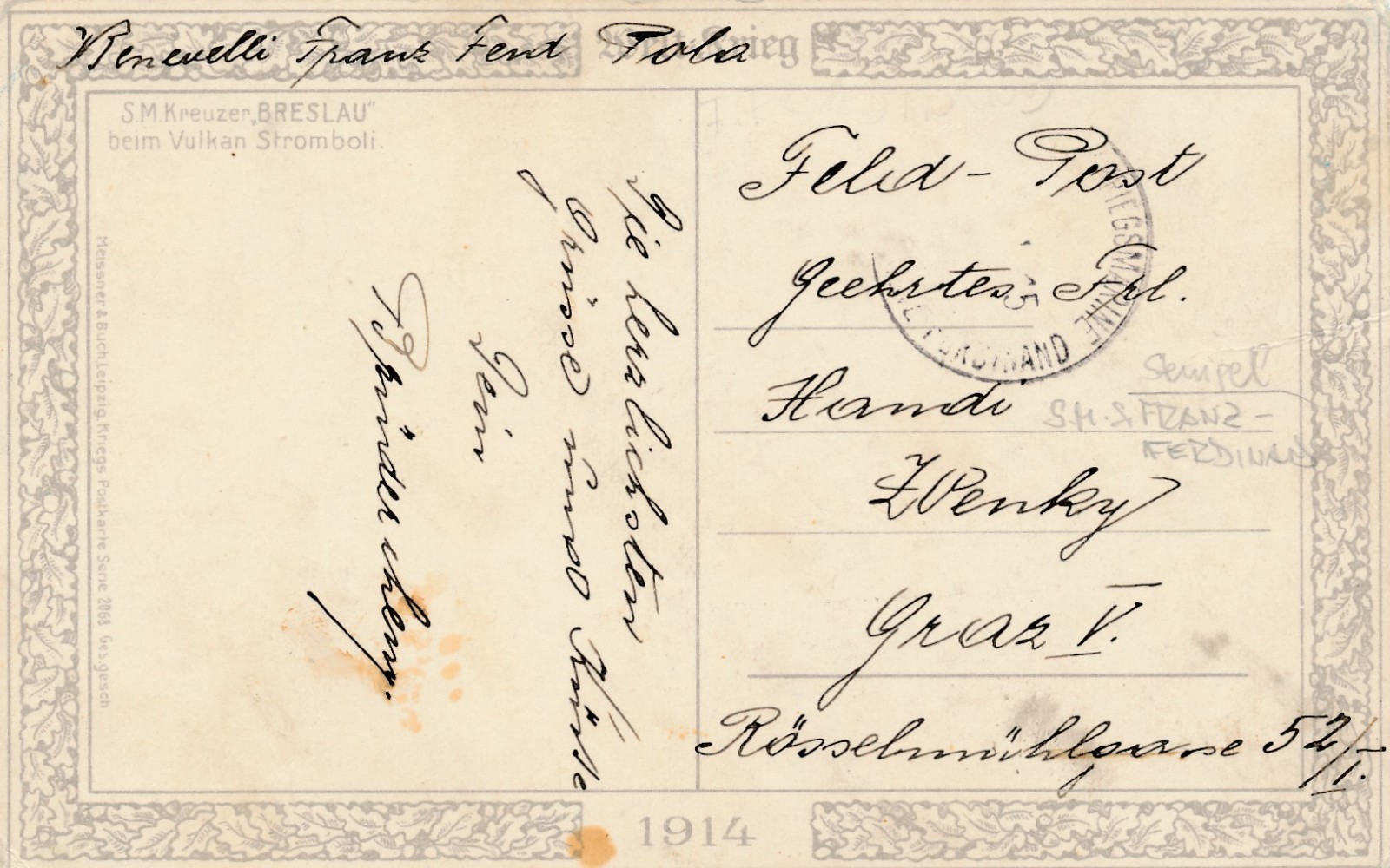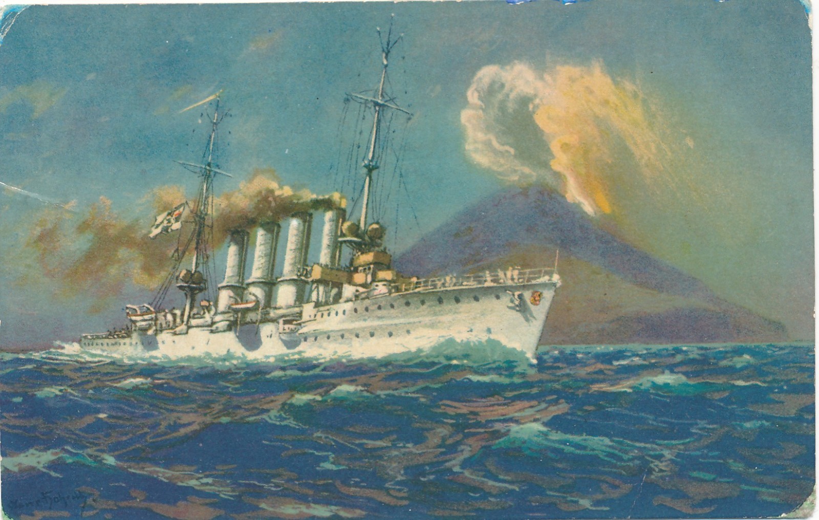 AK vom S.M Kreuzer Breslau beim Vulkan Stromboli Ansichtskarte (16793)
