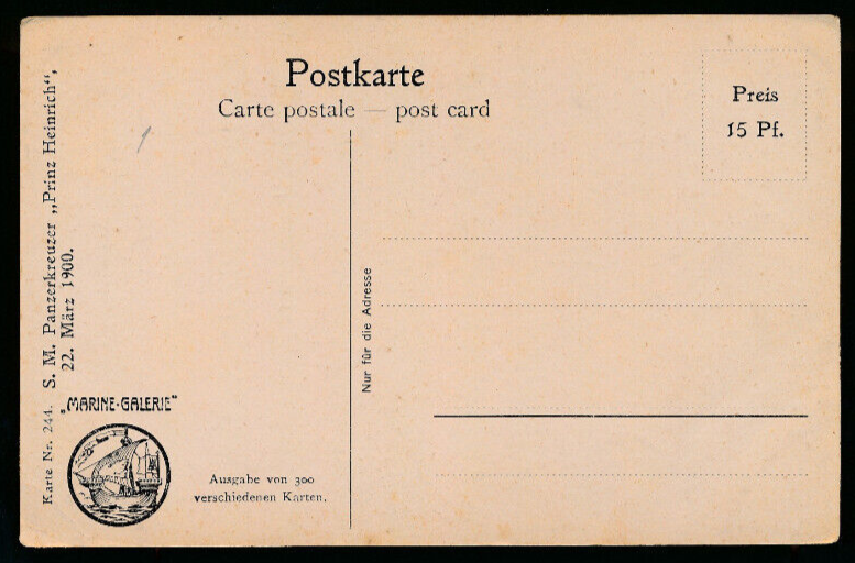 AK vom S.M. Panzerkreuzer Prinz Heinrich 22. März 1900 (896)
