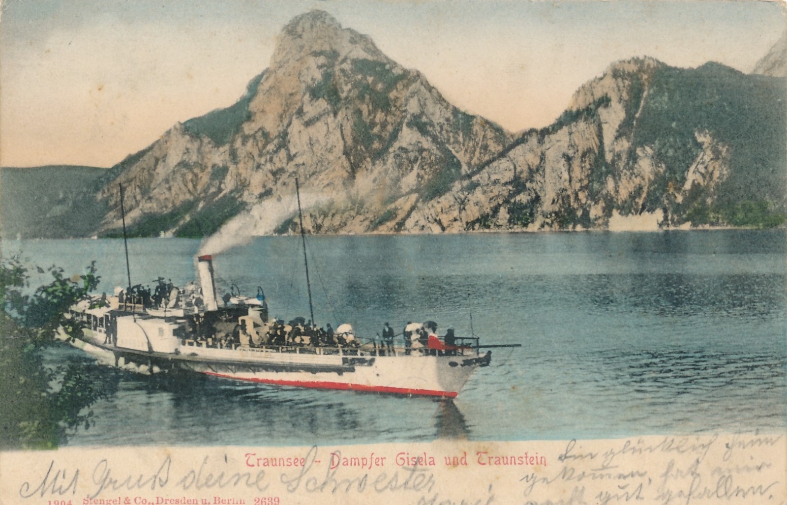 AK vom Traunsee mit Dampfer Giesela Oberösterreich Ansichtskarte (15410)