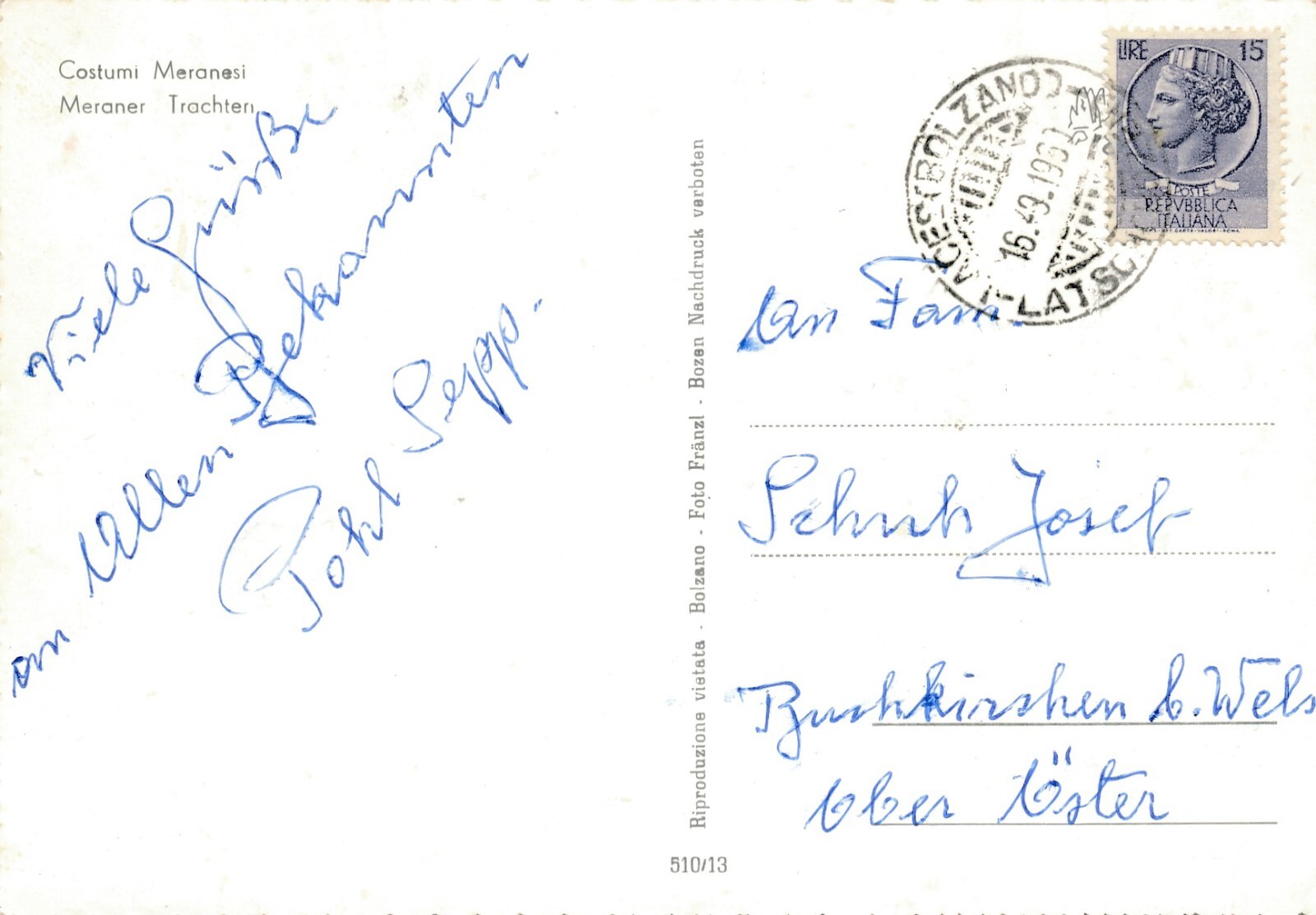 AK von der Meraner Trachten Ansichtskarte Italien (8149)