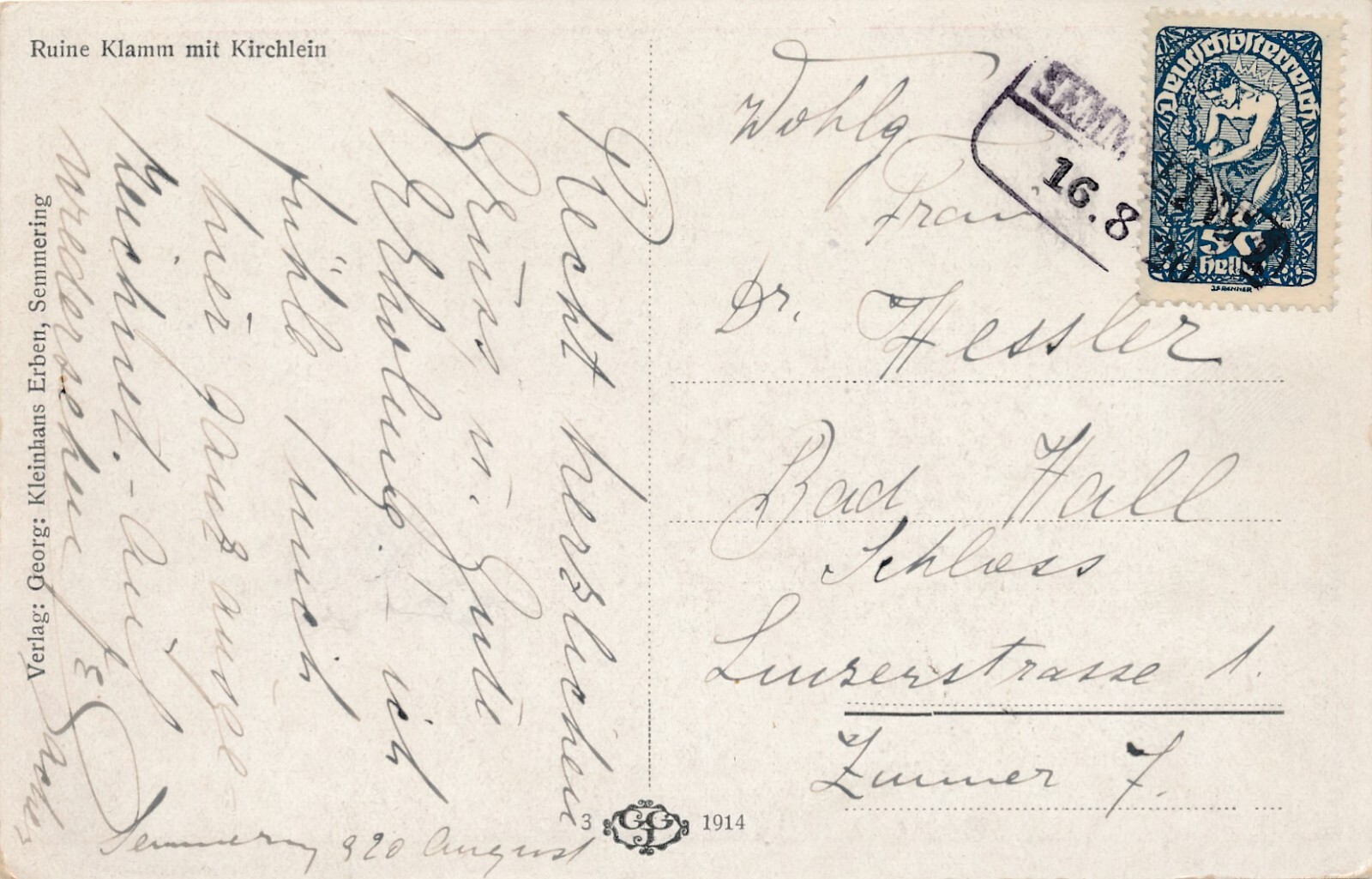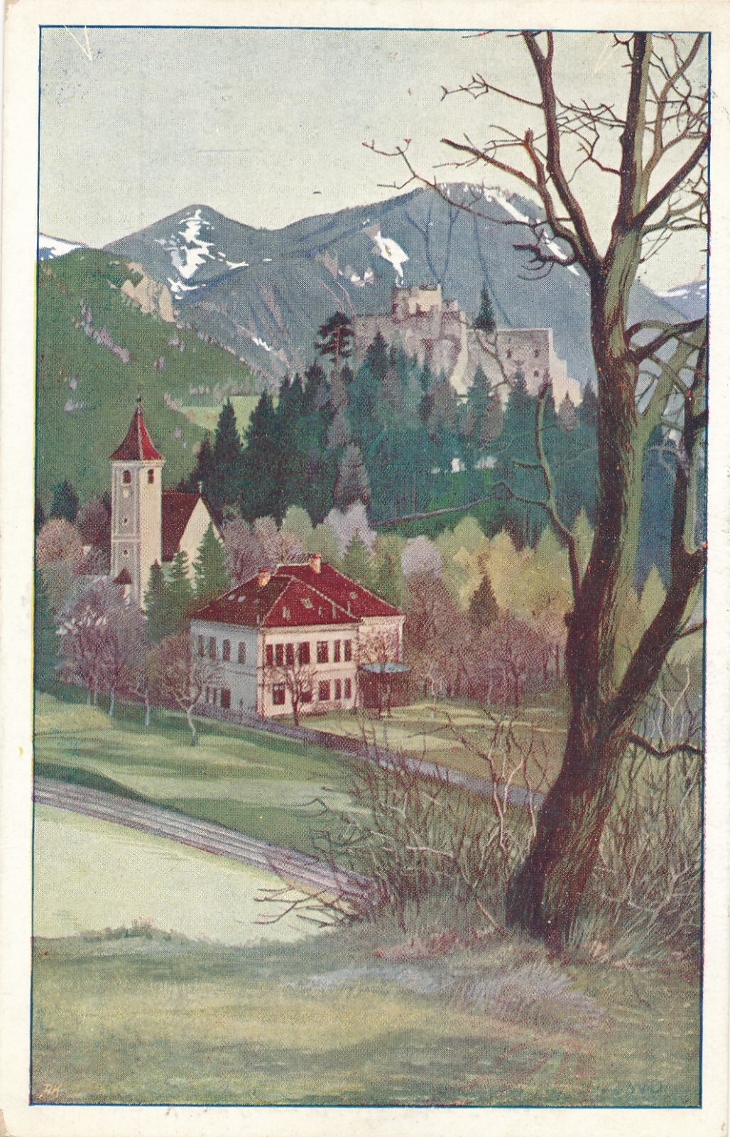 AK von der Ruine Klamm mit Kirchlein Niederösterreich (7854)