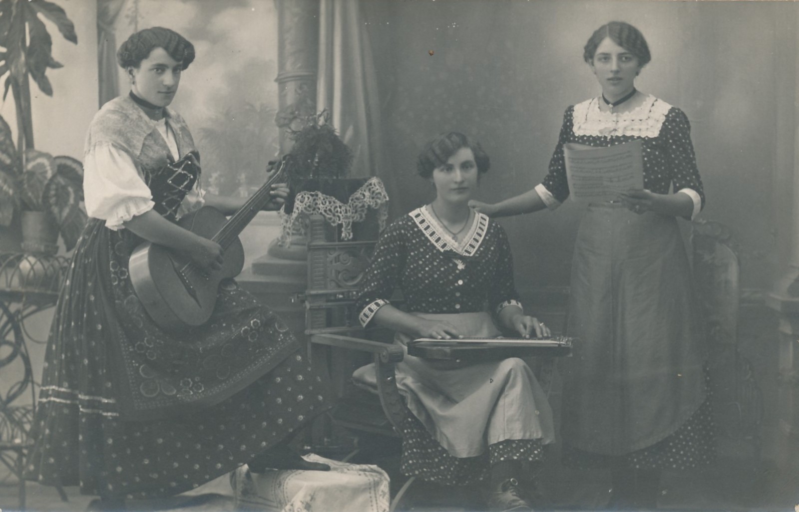 AK von drei Frauen mit Gitarre Annodazumals Ansichtskarte (15435)