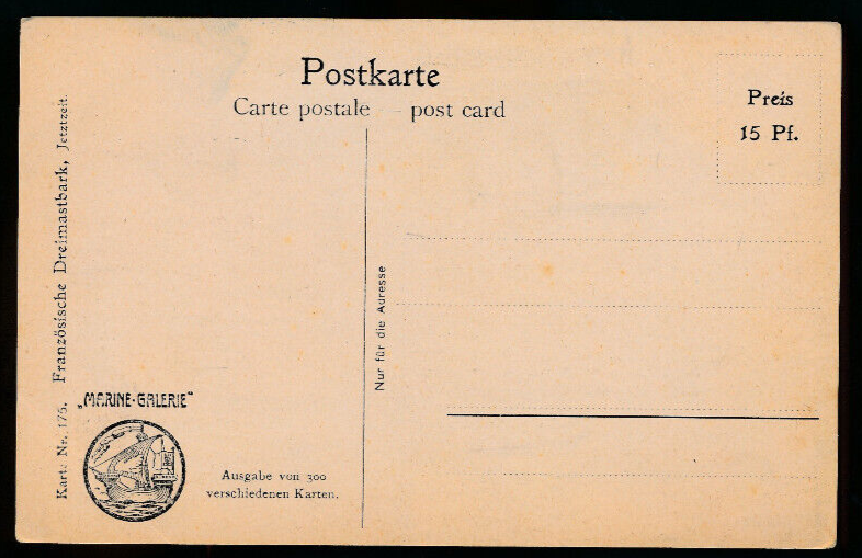 AK von einer Französischen Dreimastbark (905)