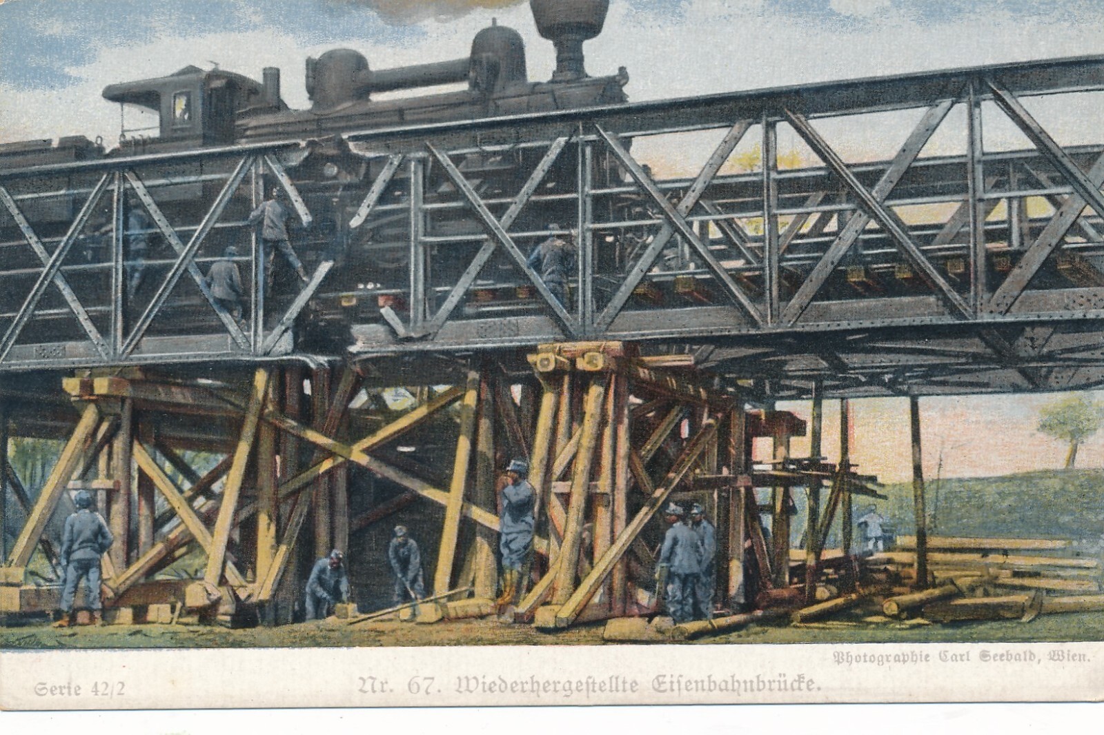 AK Wiederhergestellte Eisenbahnbrücke Ansichtskarte (13776)