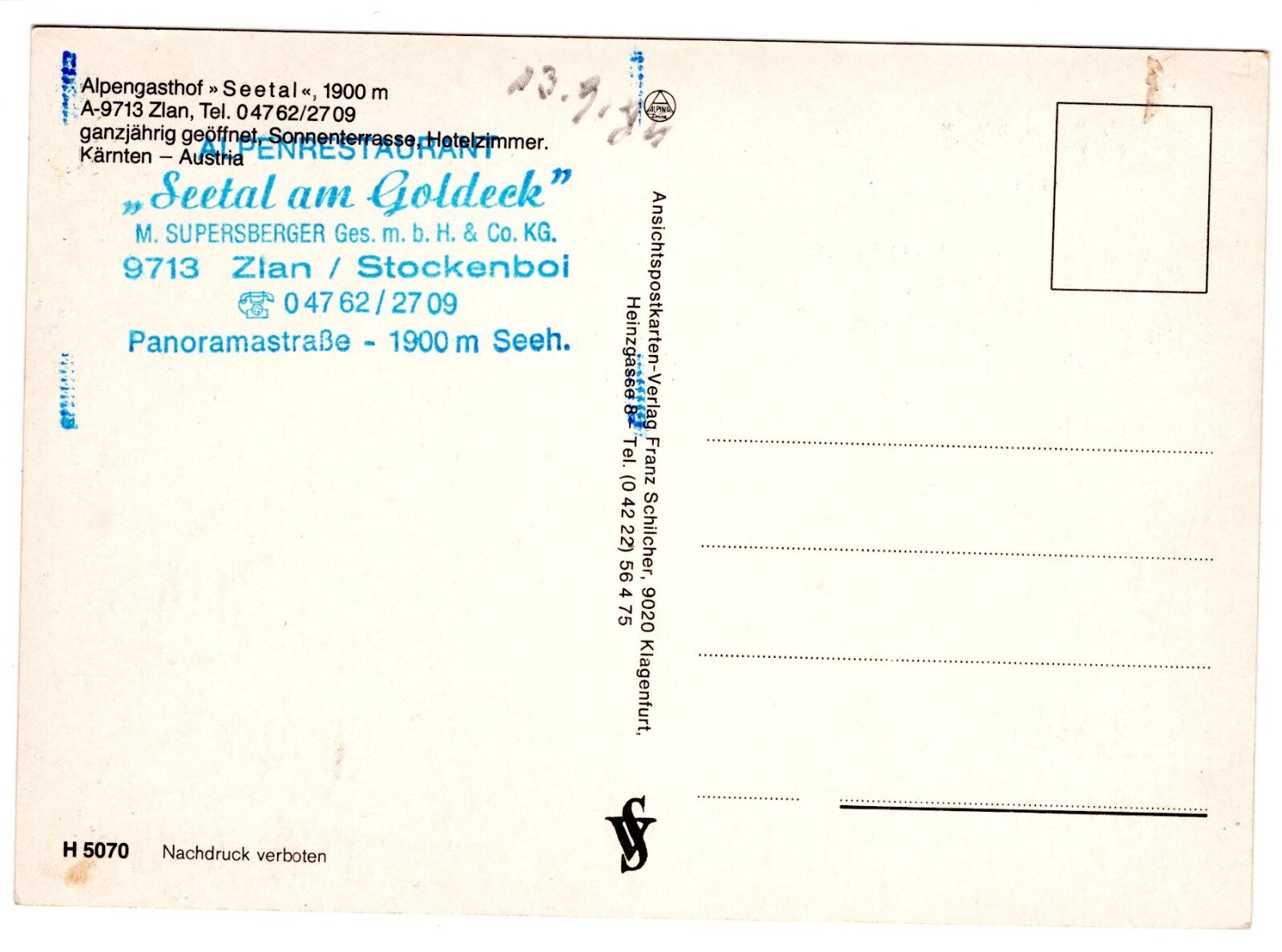 AK, Zlan, Alpengasthof Seetal, Kärnten, Ansichtskarte (S5762)