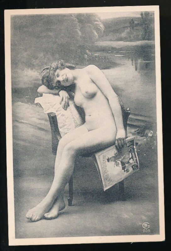 AKT Foto - Nackt - Busen Nackte Frau mit Zeitung, Neudruck ! (1181)
