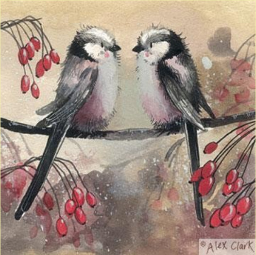 Alex Clark Vögel Longtails Grußkarte 140x140 mm incl. Umschlag 0025