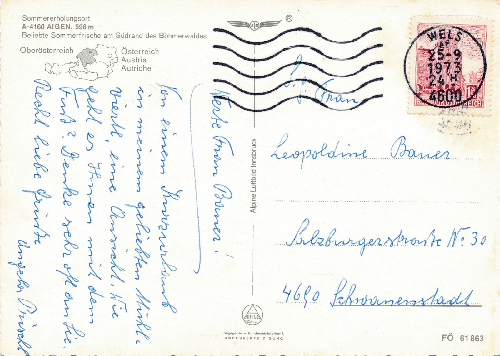 Alpine - Luftbild aus Aigen Oberösterreich Ansichtskarte (10932)