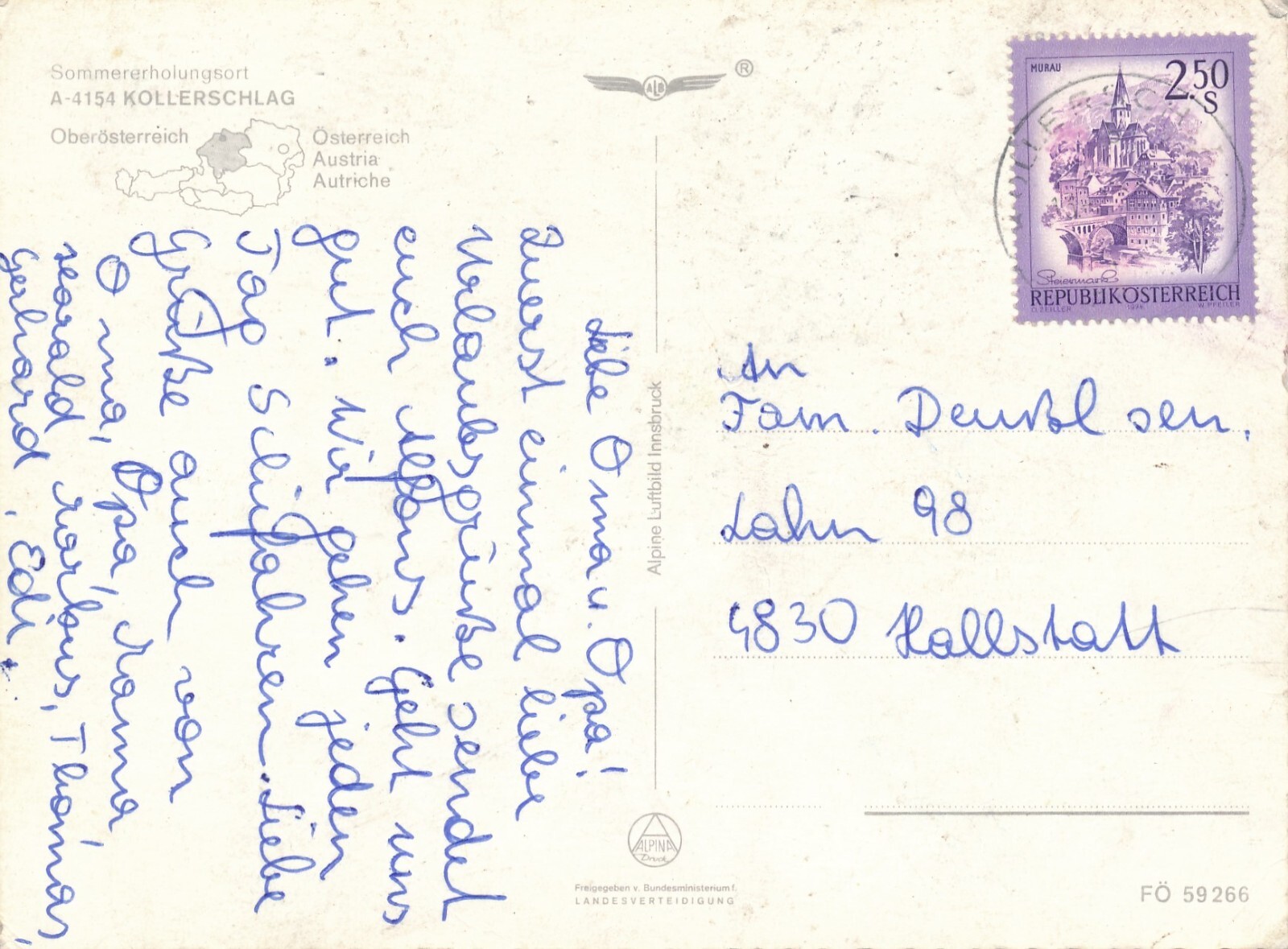 Alpine - Luftbild aus Kollerschlag Oberösterreich Ansichtskarte (10924)
