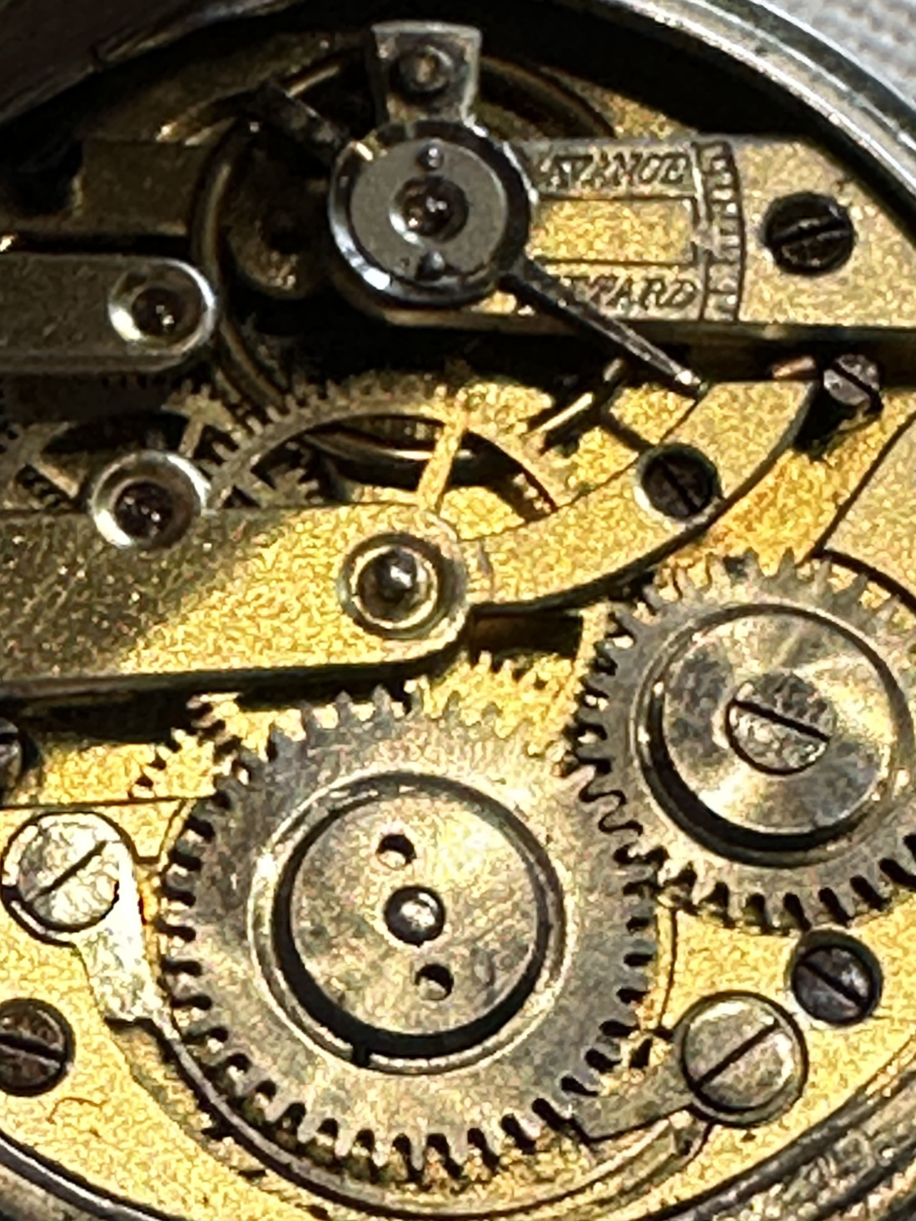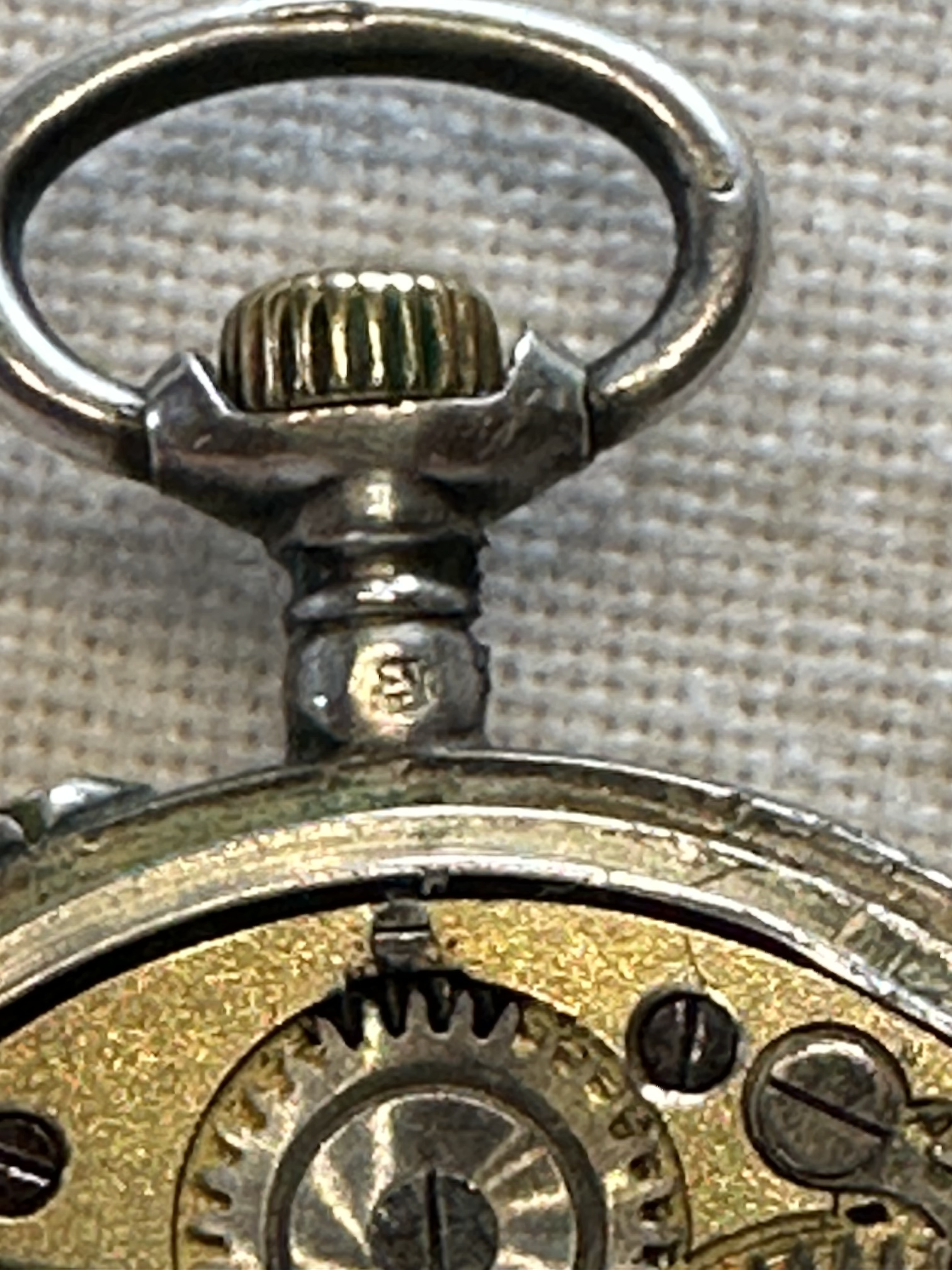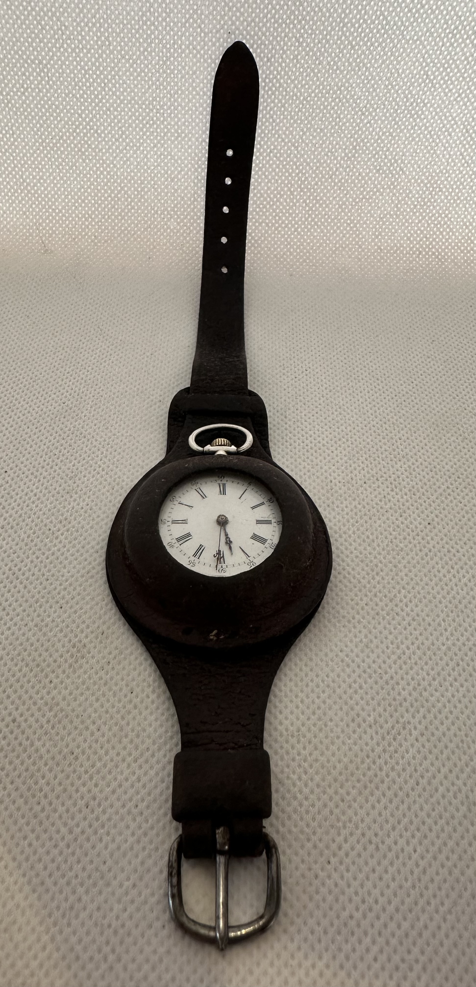 Antike - Schützengrabenuhr (Taschenuhr aus Silber vermutlich)- mit Orginalarmband auch Wristlet genannt, Remontoir Cylindre Rubis,Beschriftung auf dem Regulator ist Avance und Retard zur Feinjustierung, sie läuft, es gibt auch einen Punzen siehe Foto, Nummer 9373
