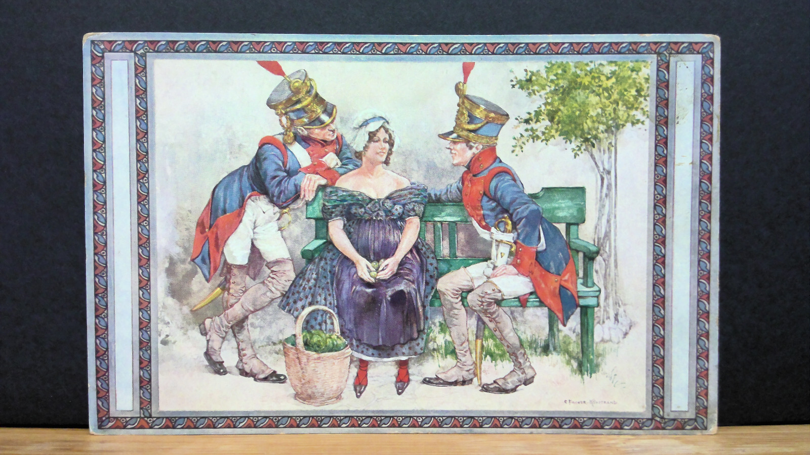 Aus der guten alten Zeit. Dessin 1 Soldaten Bauernmädchen JW 650193 C