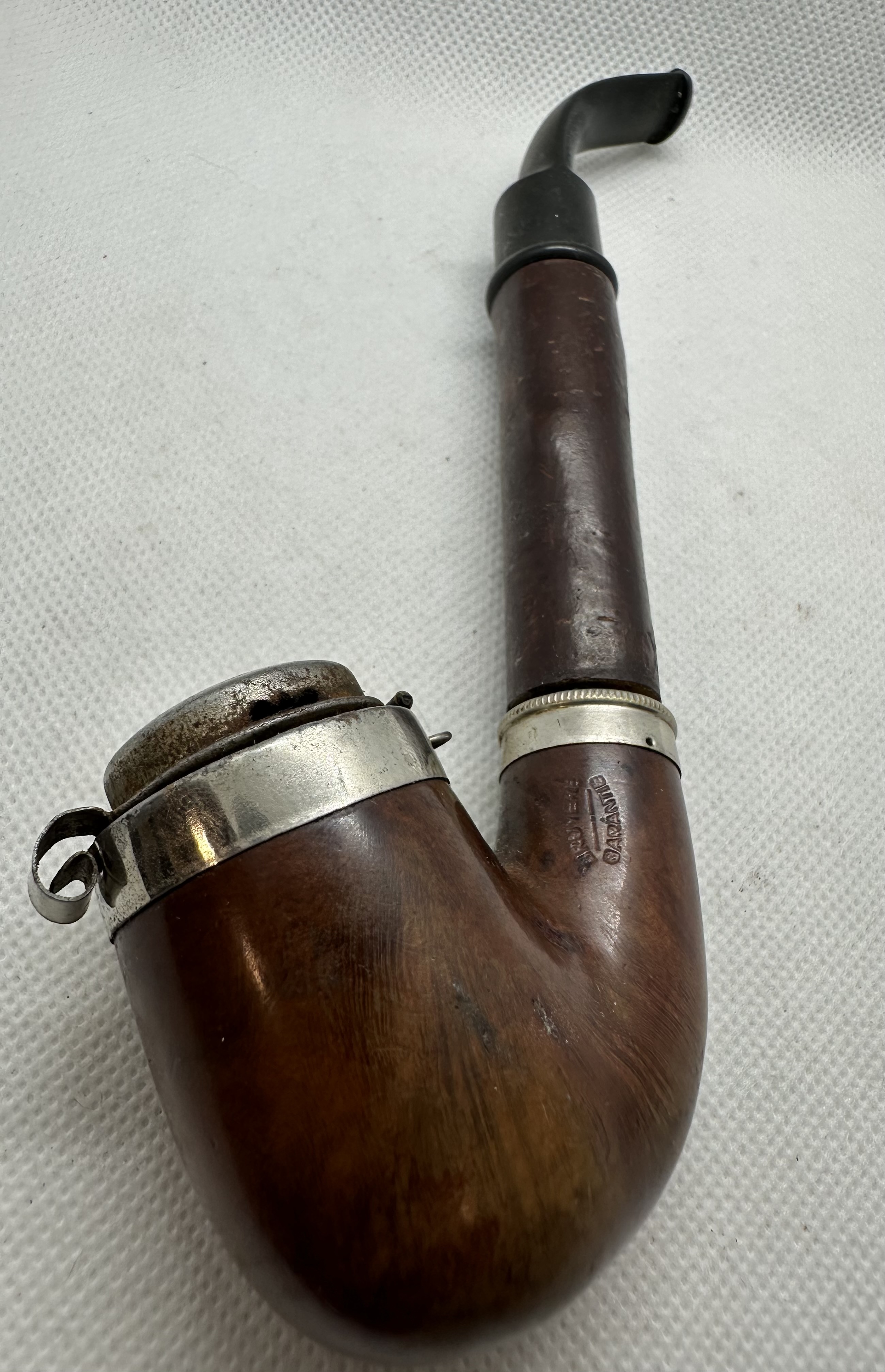 Alte Bruyere Garantie Pfeife, Deckel aus Metall,