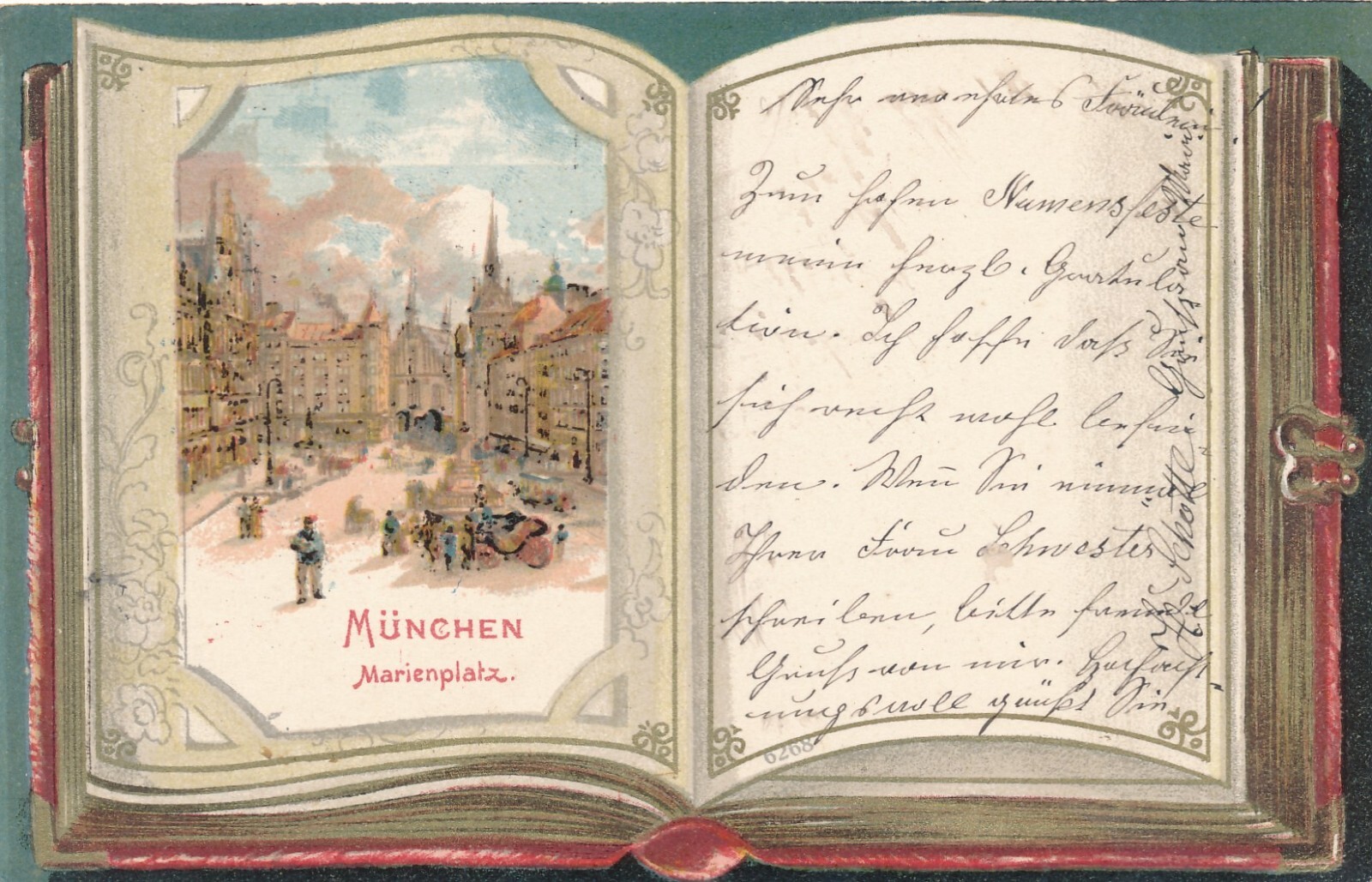 Buch - Litho - Karte gruss aus München Marienplatz Bayern (6595)