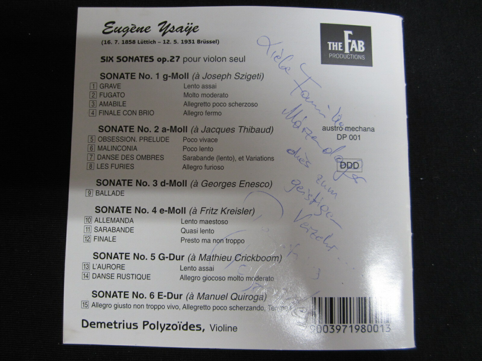 CD / EUGENE YSAYE / SONATES OP.27 / DEMETRIUS POLYOIDES / FAB REC. / AUT /