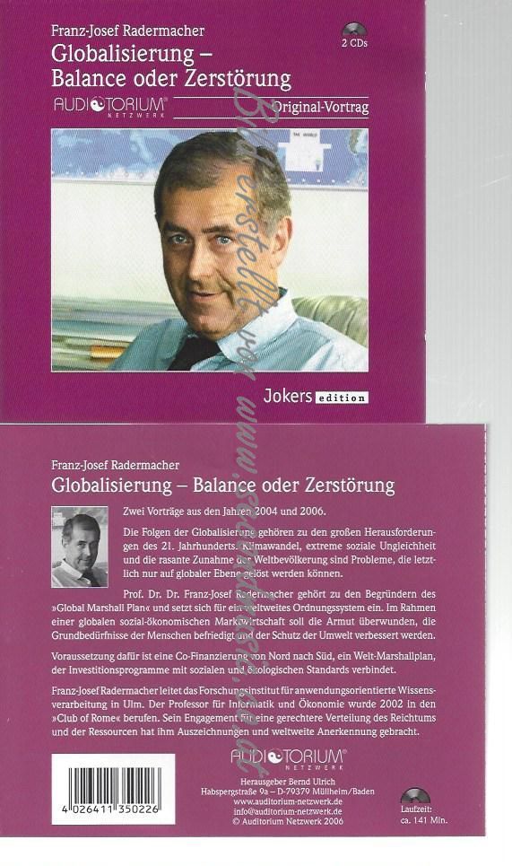 CD--FRANZ-JOSEF RADERMACHER GLOBALISIERUNG - BALANCE ODER ZERSTÖRUNG -