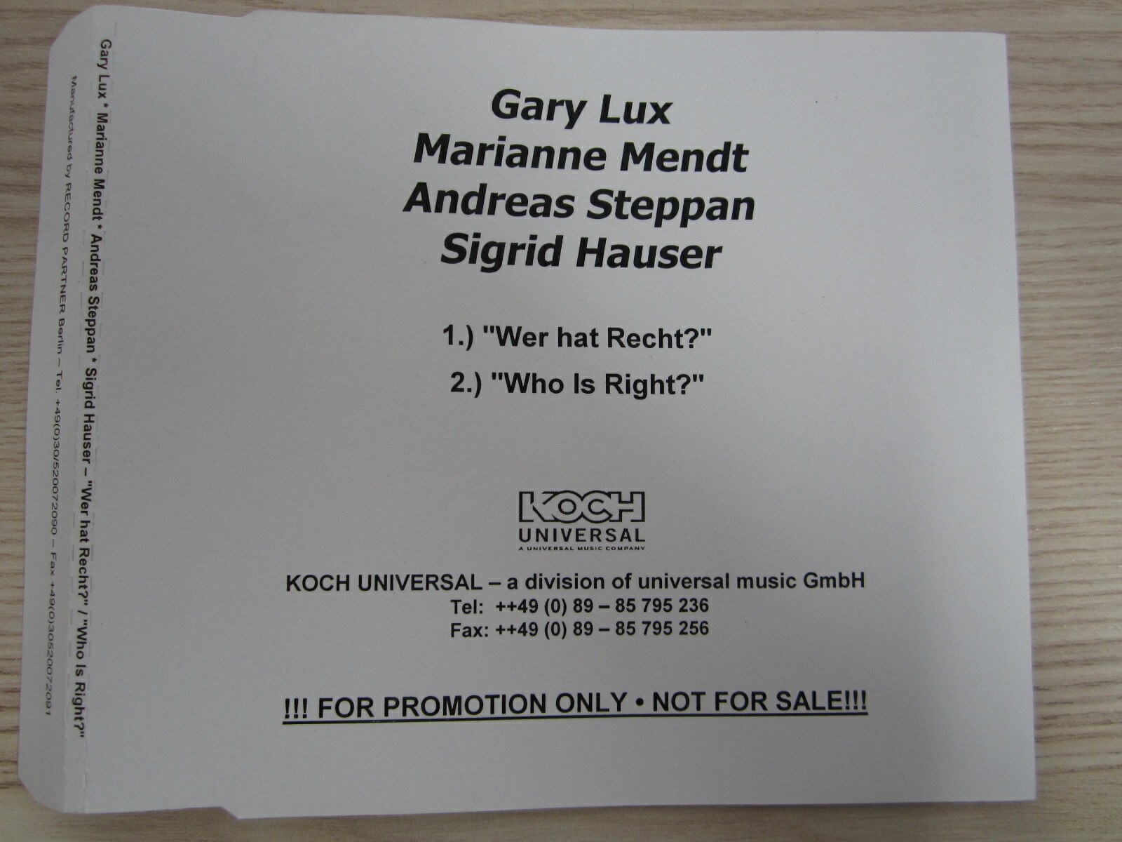 CD / GARY LUX , MARIANNE MENDT , ANDREAS STEPPAN, HAUSER / PROMO / RARITÄT /