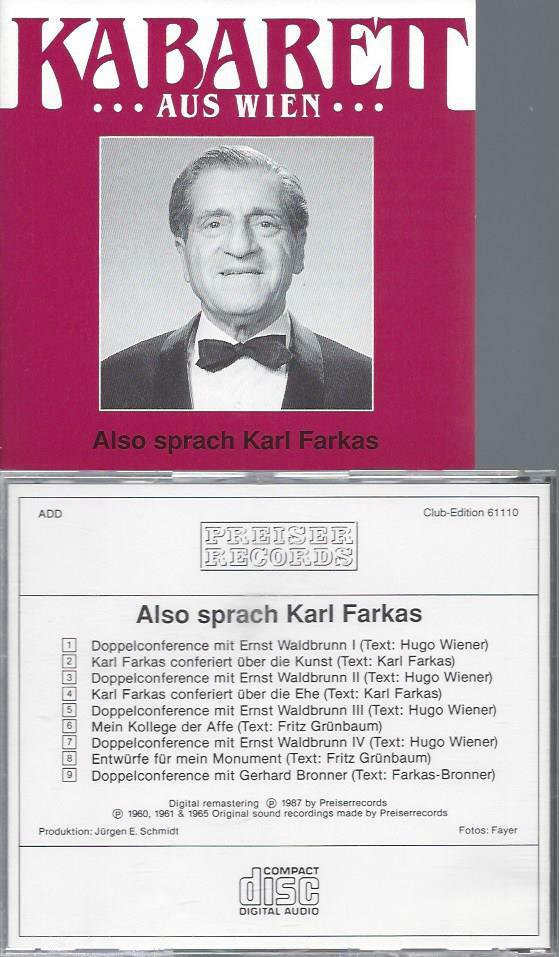 CD // KABARETT AUS WIEN ALSO SPRACH KARL FARKAS
