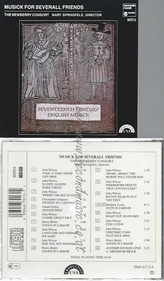 CD--Musick For Several Friends: Seventeenth Century English Musick