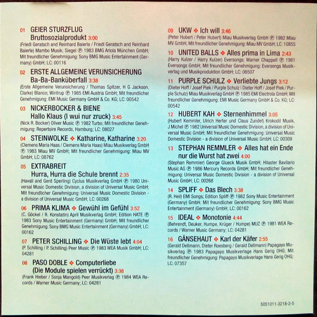 CD / NDW / HITS 2 / EAV / UKW / PURPLE SCHULZ / PRIMA KLIMA / SPLIFF / TOP /