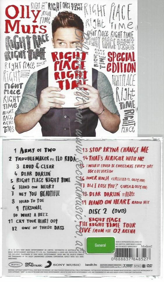 CD--OLLY MURS--RIGHT PLACE RIGHT TIME INKL. KOMPLETTES KONZERT AUF