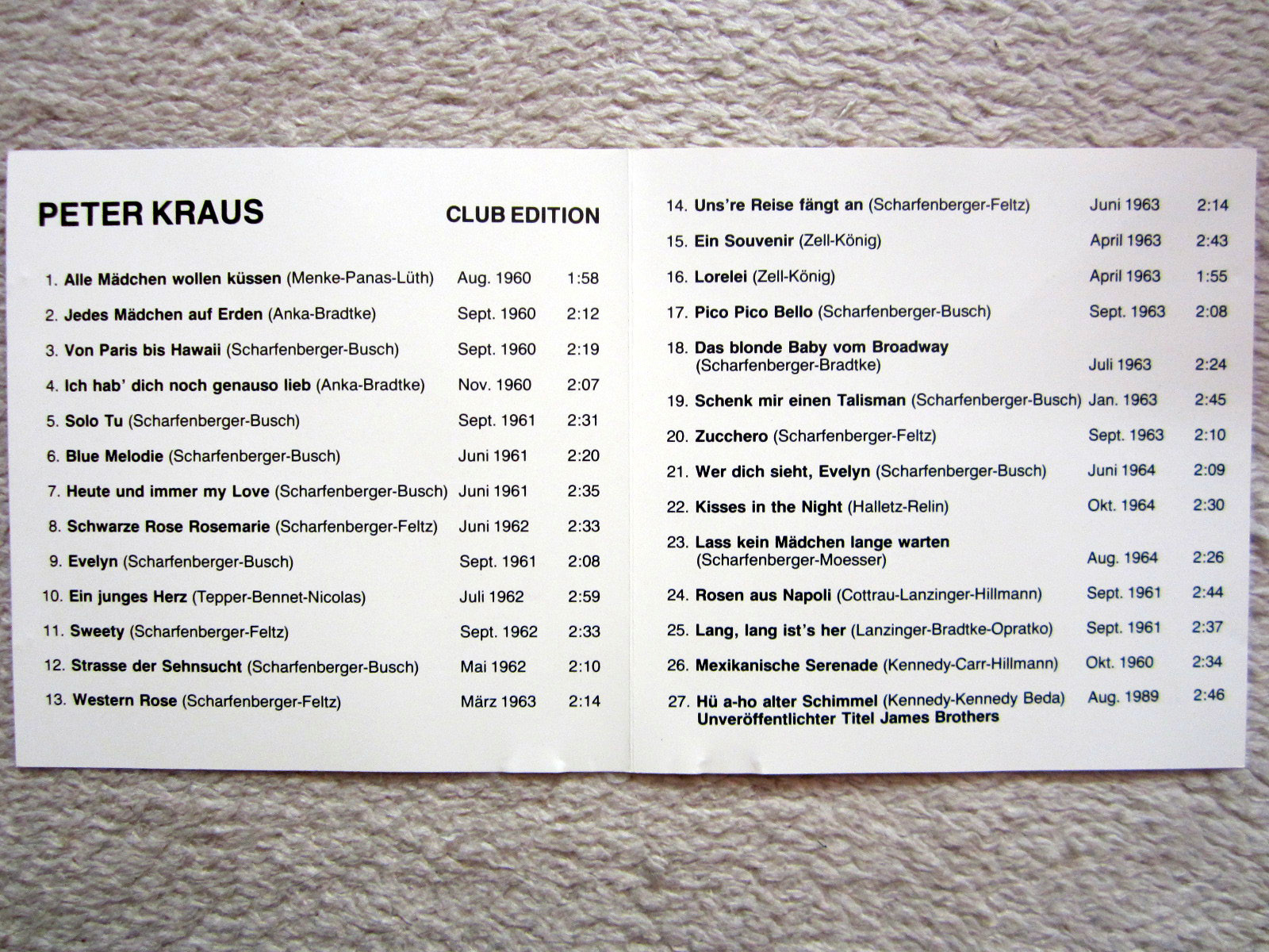 CD / PETER KRAUS / MIT ORIG.AUTOGRAMM / CLUB EDITION / 1989 / POLYDOR / RAR /