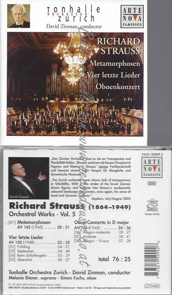 CD--VIER LETZTE LIEDER / OBOENKONZERT/ -STRAUSS: METAMORPHOSEN