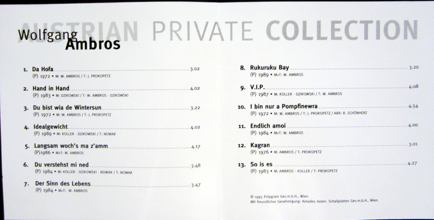 CD / WOLFGANG AMBROS / AUSTRIAN PRIVATE COLLECTION / TOP / 1995 /