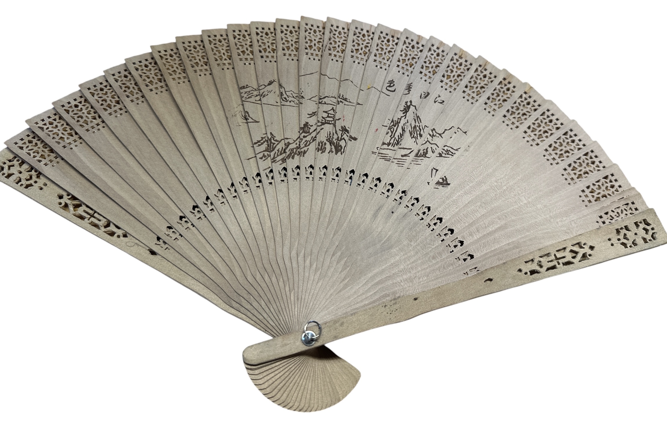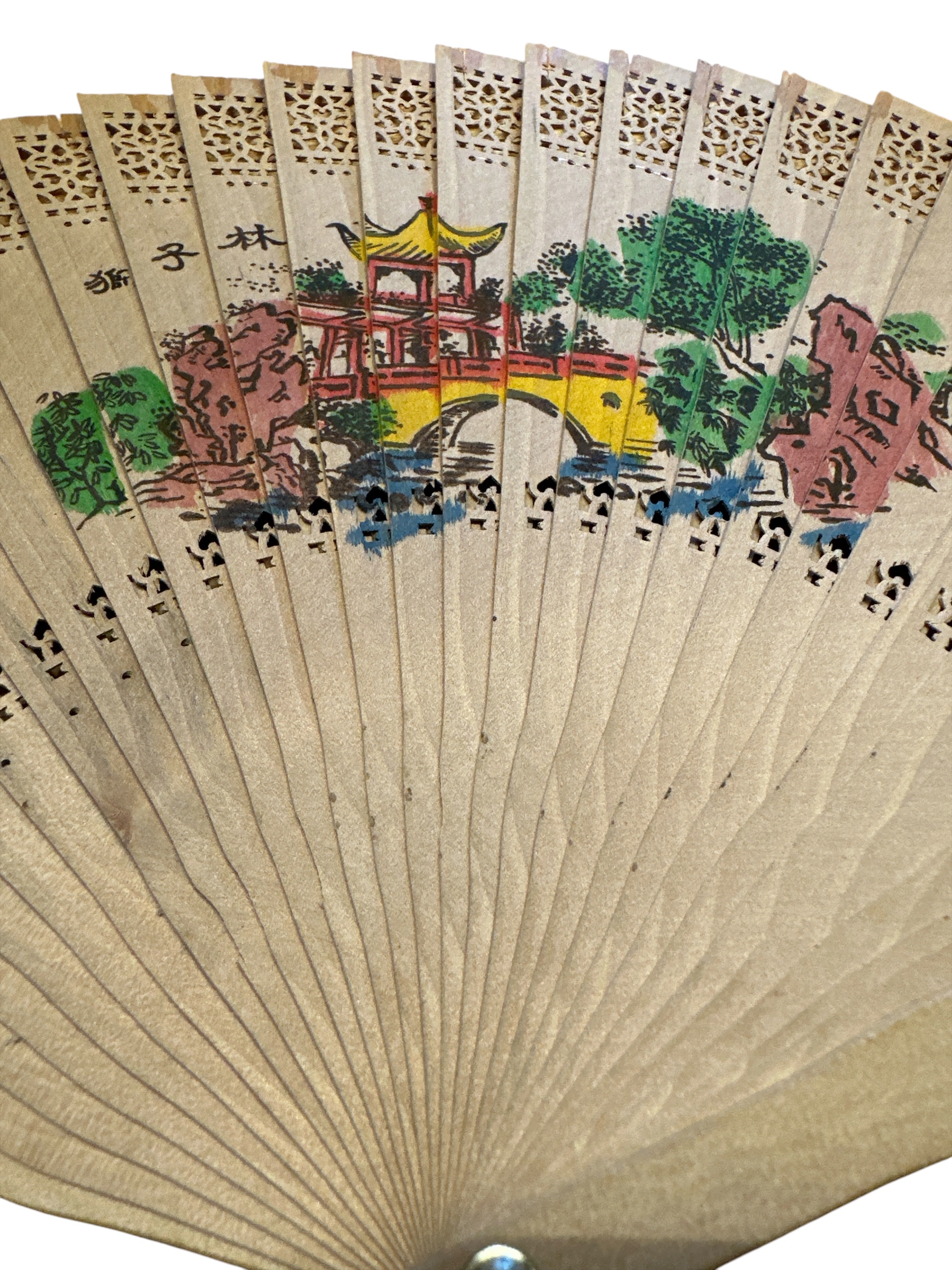 Alter chinesischer Holzfächer, handbemalt