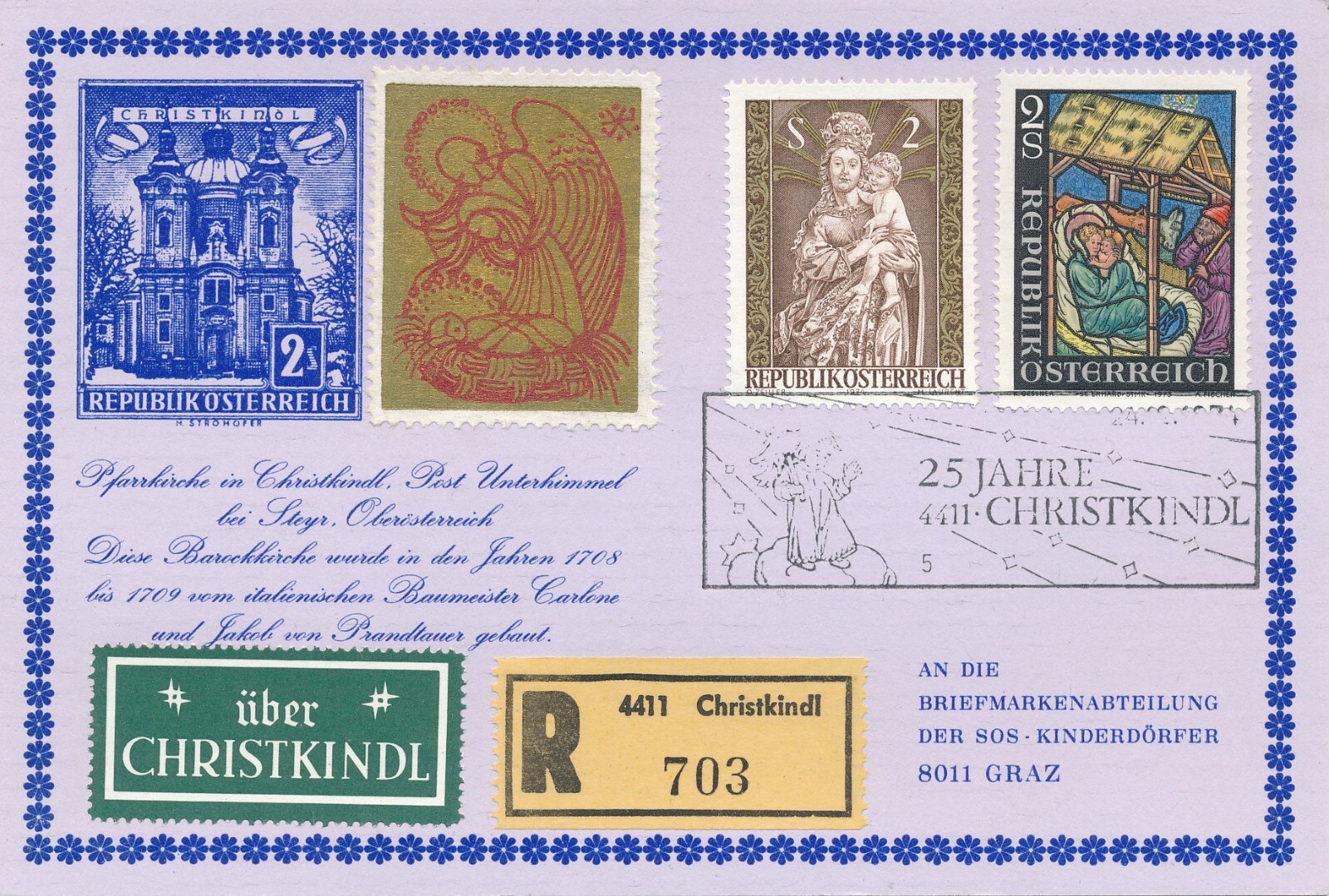 Christkindl - Reco - Karte 24.12.1974 + Vignette (11583)
