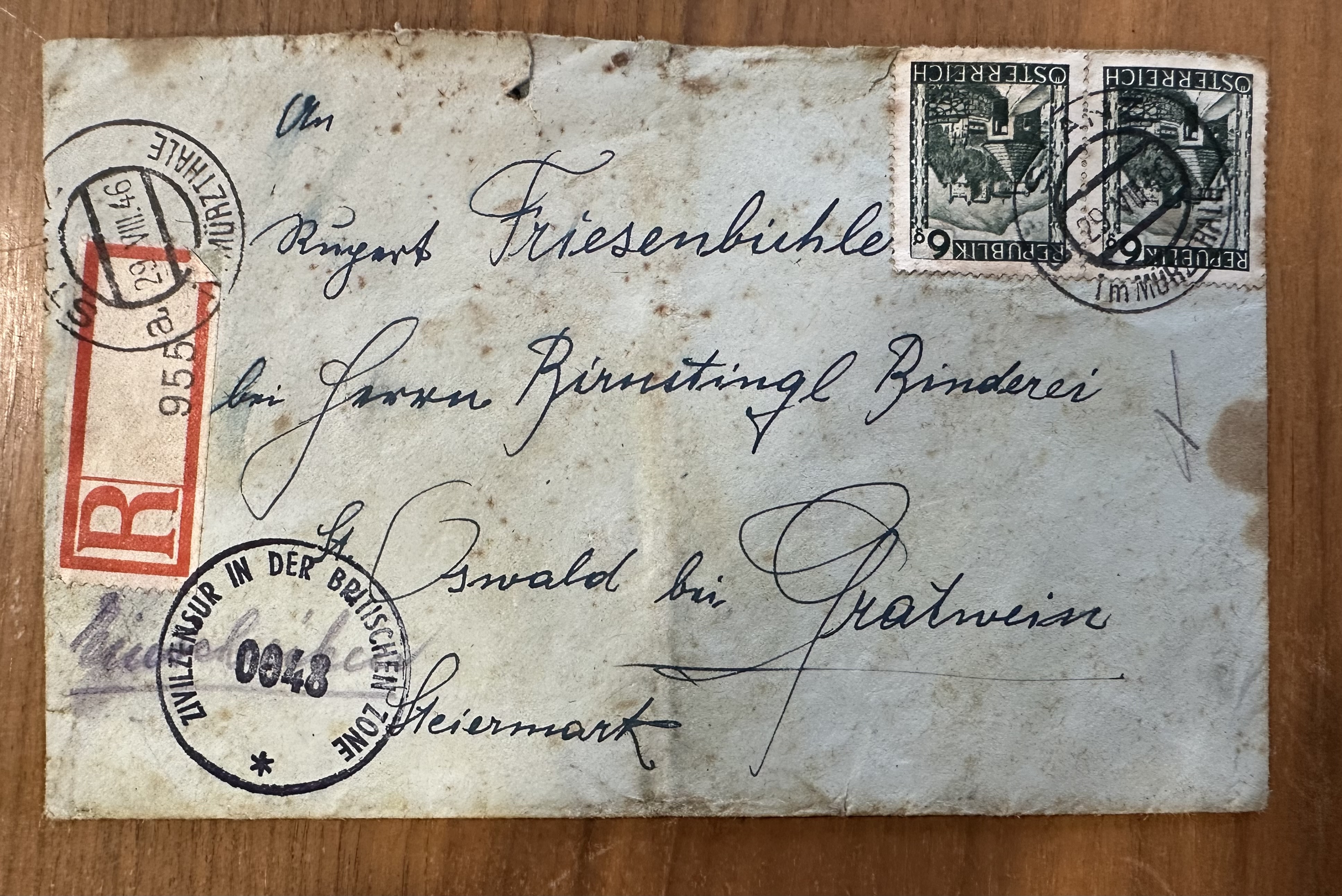 Einschreibe-Brief von 1946 mit Zensurstempel Britische Zone