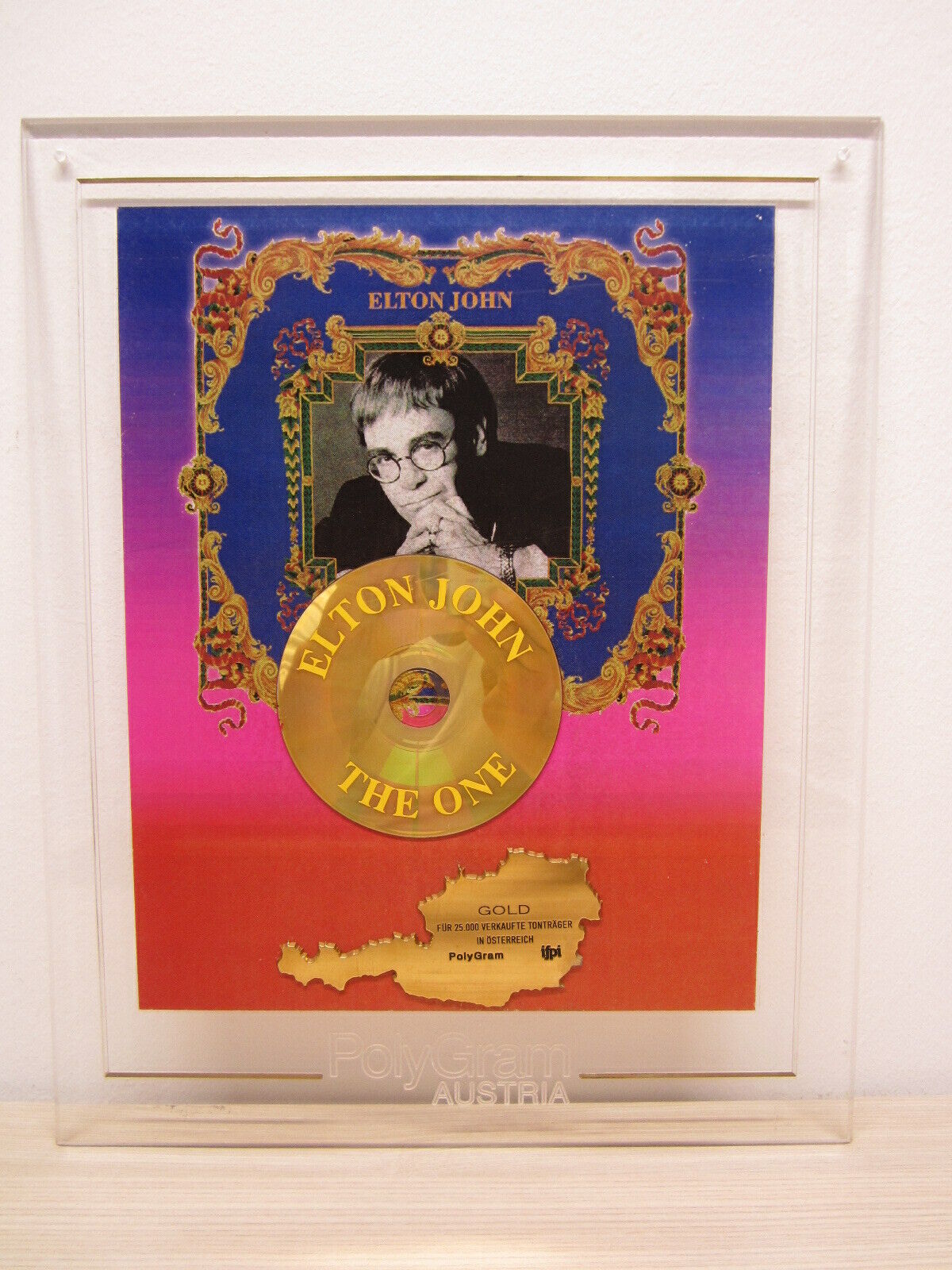 ELTON JOHN ORIGINAL GOLD AUSZEICHNUNG FÜR 25.000 VERKAUFTE TONTRÄGER ÖSTERREICH