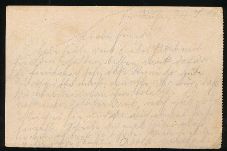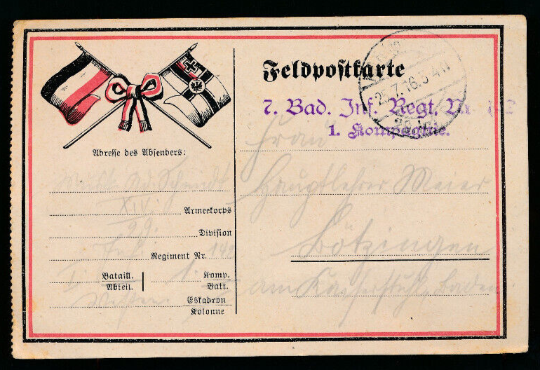 Feldpost-Karte 7. Bad. Inf. Regt. Nr.142 1.Kompanie (1167)