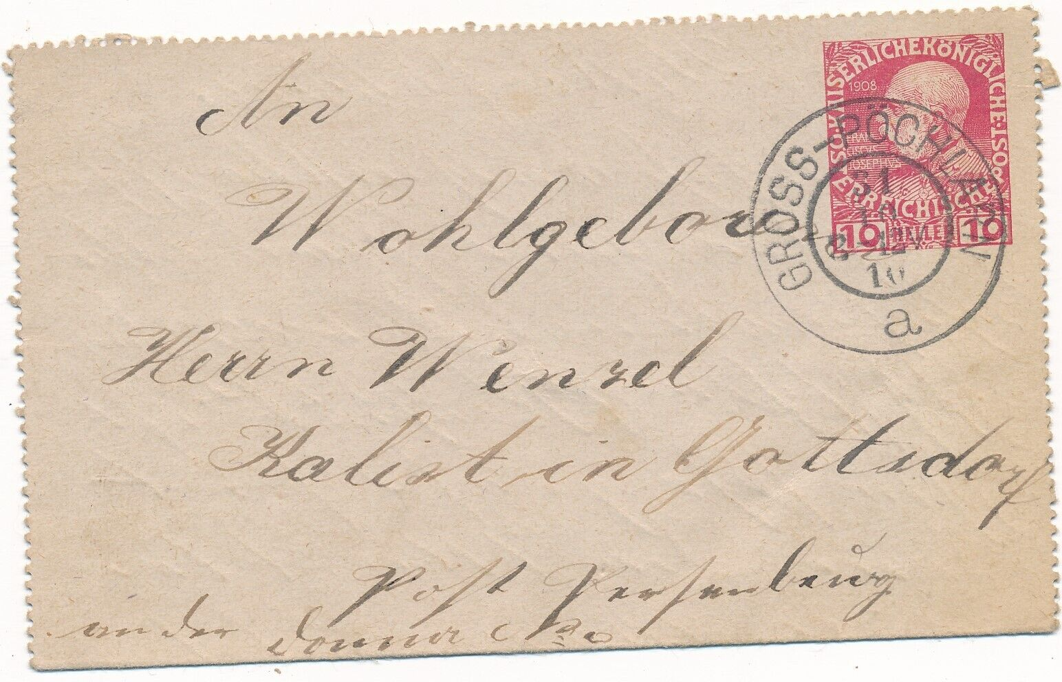 Ganzsachen - Kartenbrief 1910 aus Gross Pöchlarn (8541)