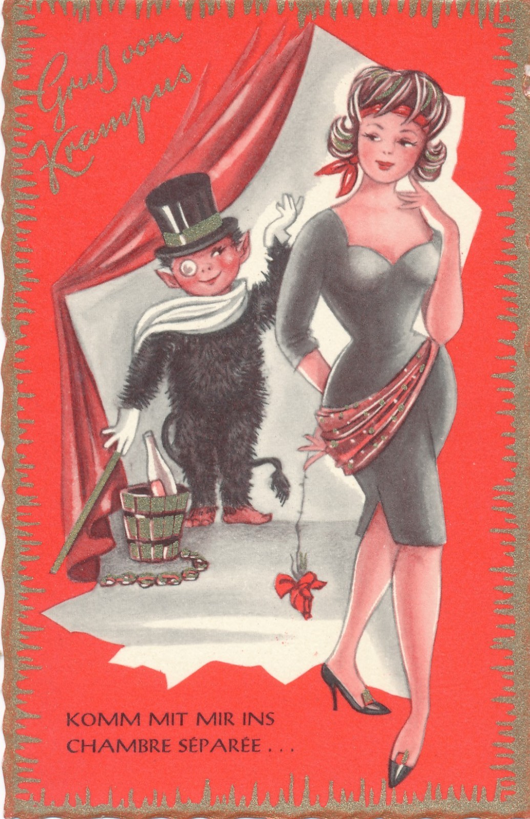 Glückwunschkarte Krampus mit Krampusine Ansichtskarte (15644)