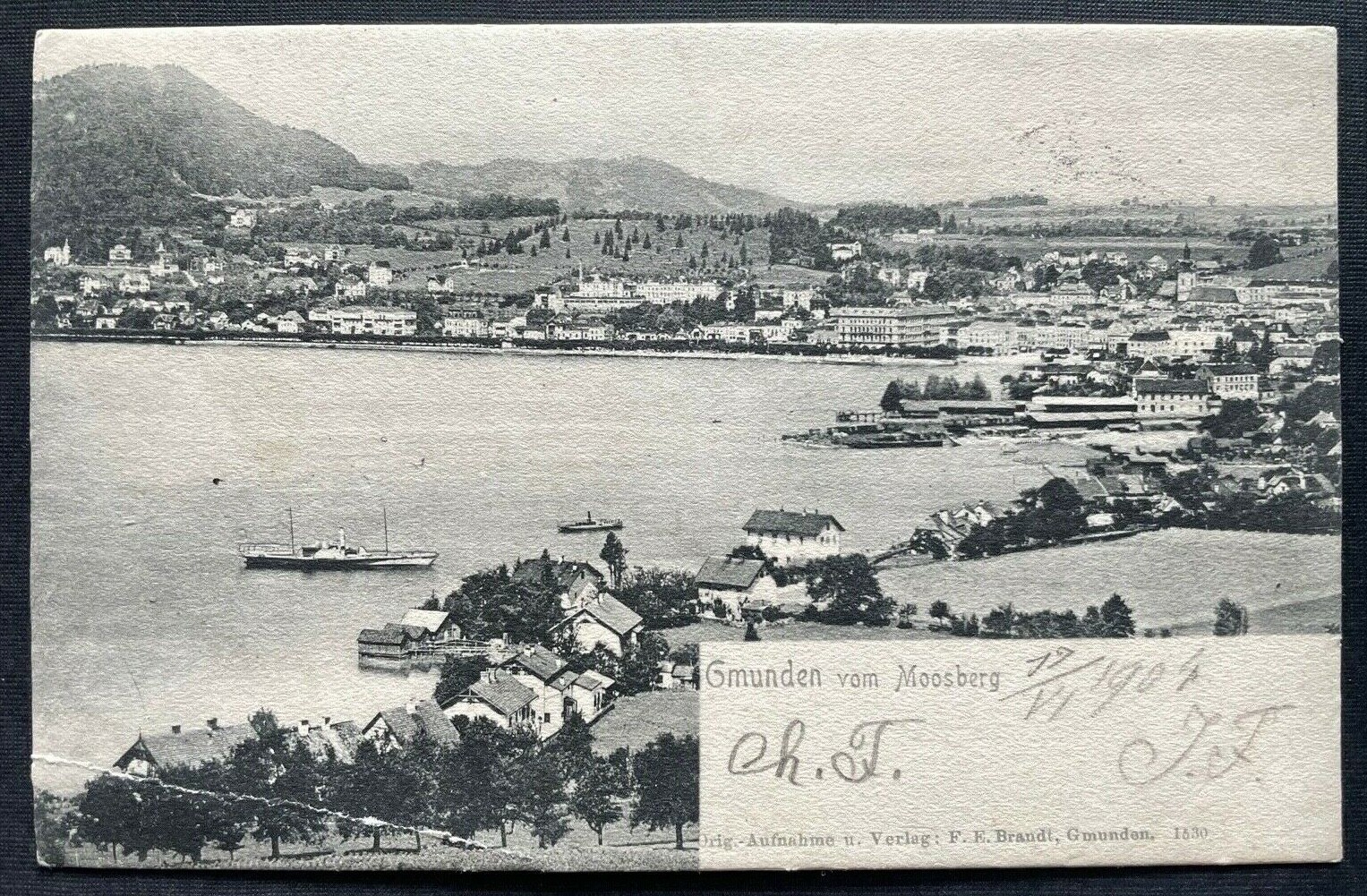 Gmunden vom Moosberg Stadt Traunsee Schiff Gebirge Oberösterreich 410664 A