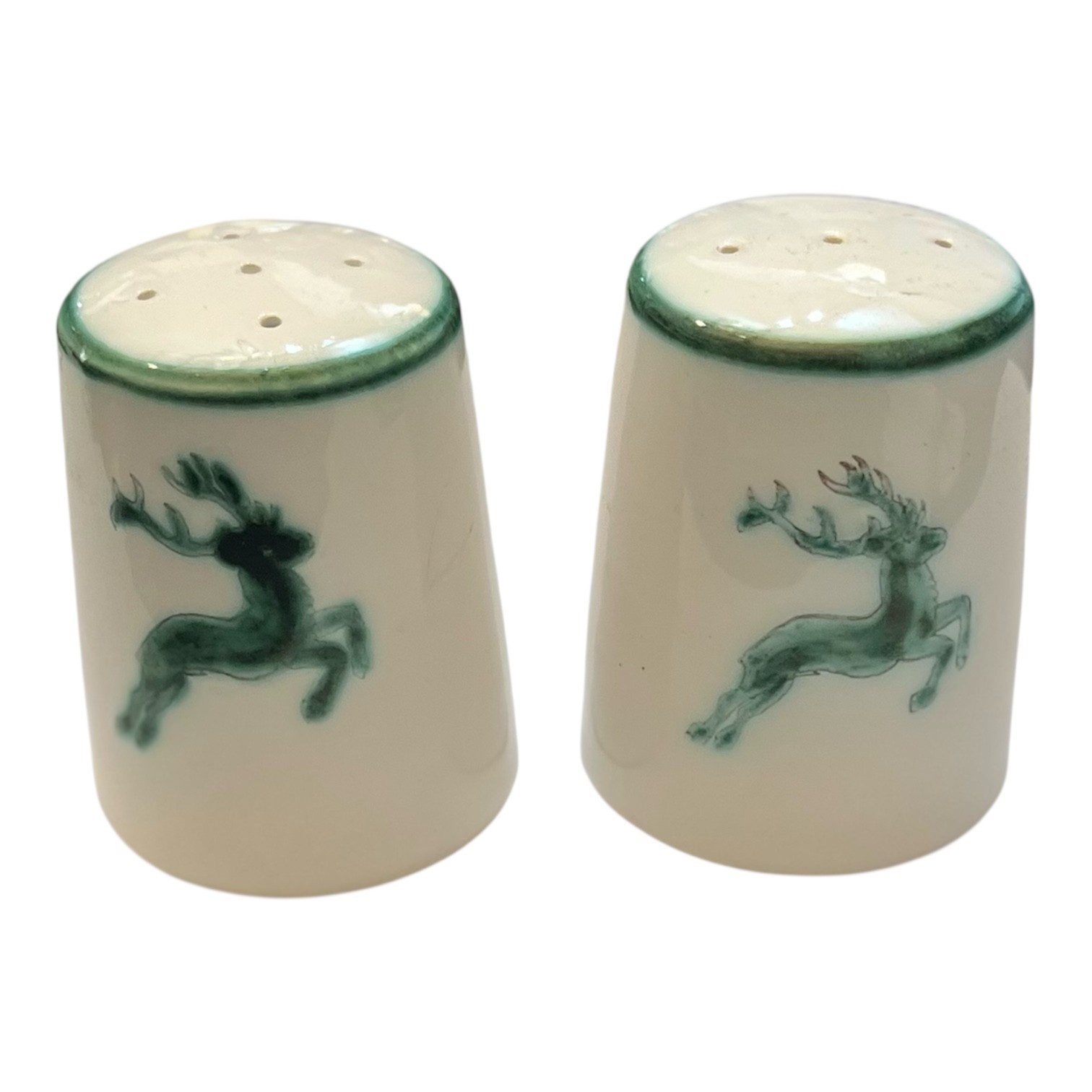 Gmundner Keramik Grüner Hirsch Salz u Pfefferstreuer