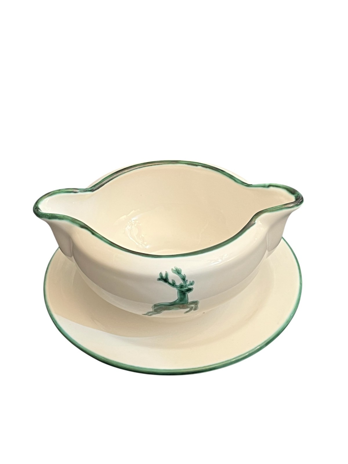Gmundner Keramik Grüner Hirsch Sauciere mit Unterteller