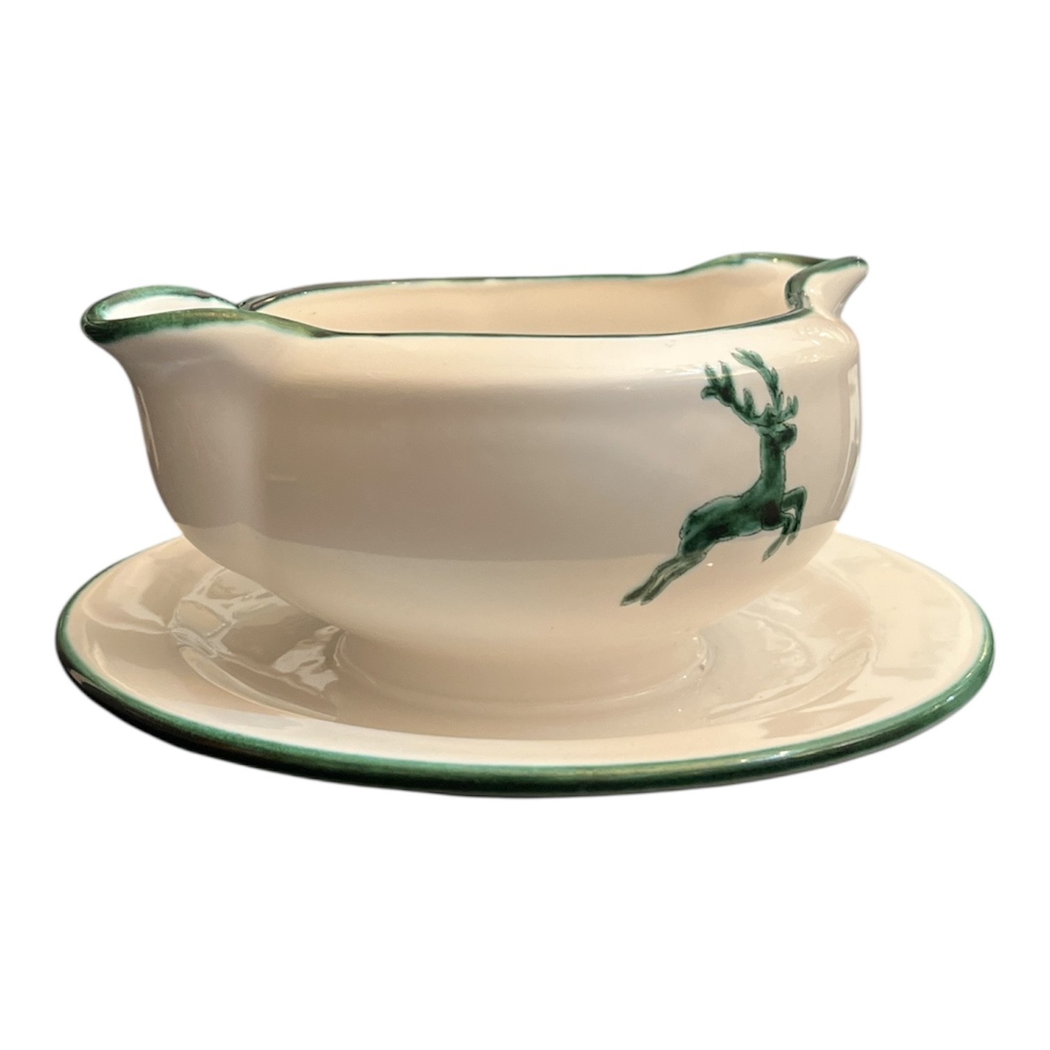 ? Gmundner Keramik Sauciere mit Unterteller – Grüner Hirsch | ca. 28 cm