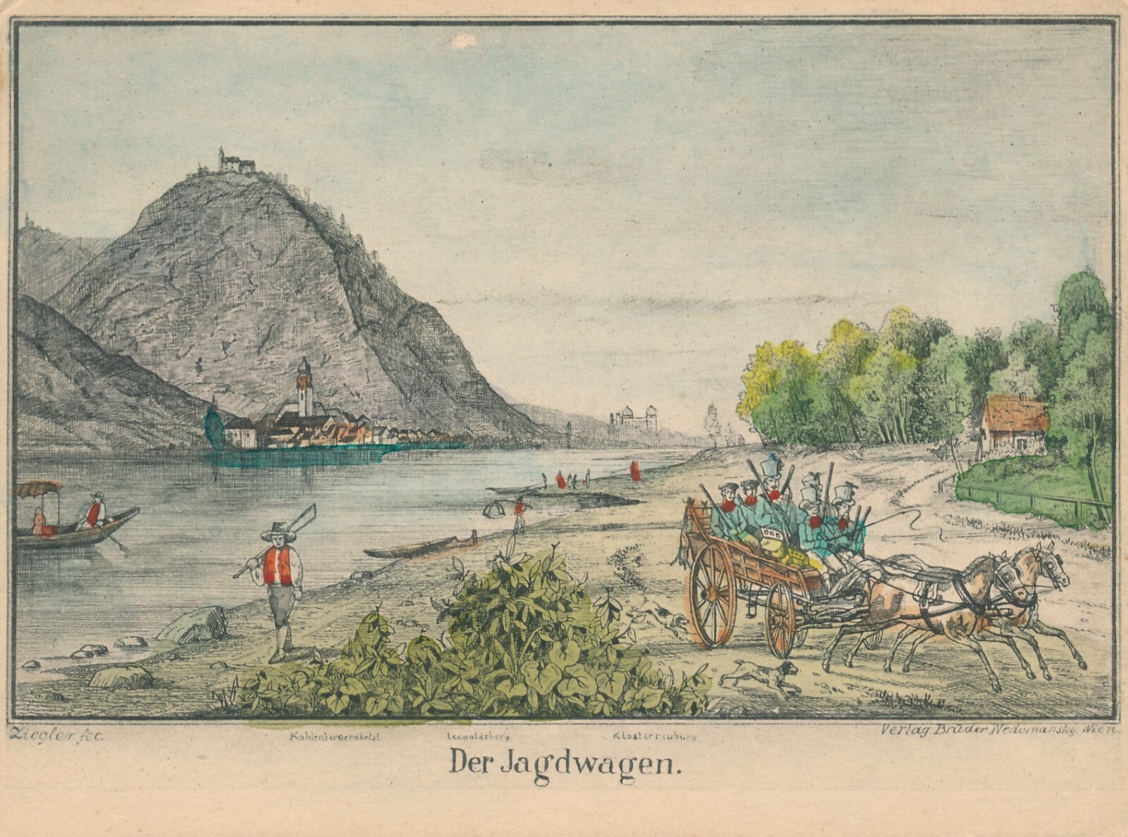 Handkolorierte AK der Jagtwagen Ansichtskarte (10842)