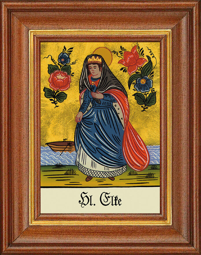 Hinterglasbild - Heilige Elke - Patronatsbild Taufe Namenspatron 12,7x16