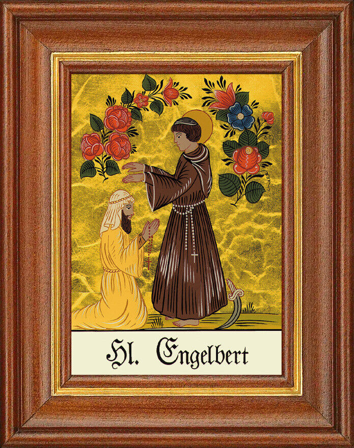 Auf der Rückseite ist die Darstellung sowie die Legende des Namenspatrons beschrieben. Die Größenangaben beziehen sich auf das Bild inklusive Rahmen.