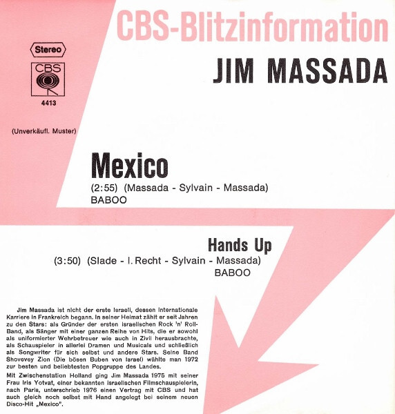 Jim Massada - Mexico / Hands Up (7", Single, Promo)