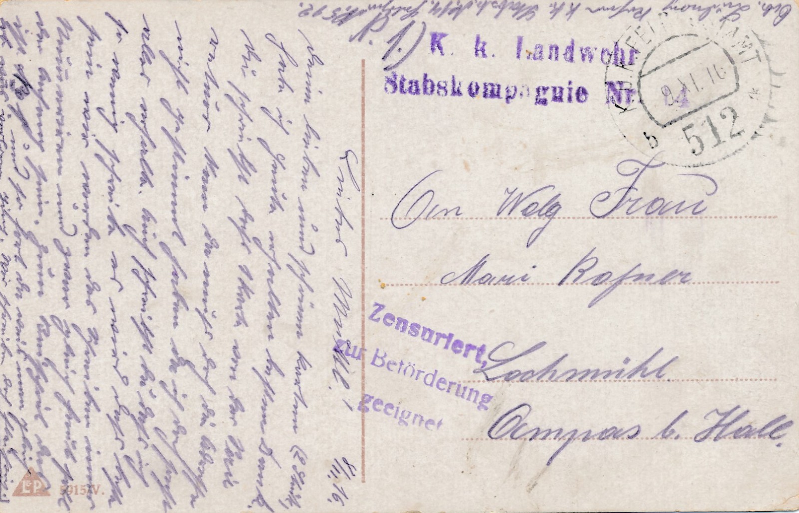 KuK Landwehr Stabskompagnie Nr. 4 Ansichtskarte (16161)