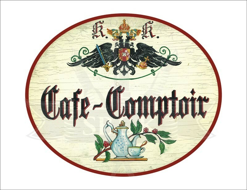 KuK Nostalgie Holzschild - Cafe-Comptoir - Kaffekanne Kaffeetasse TH