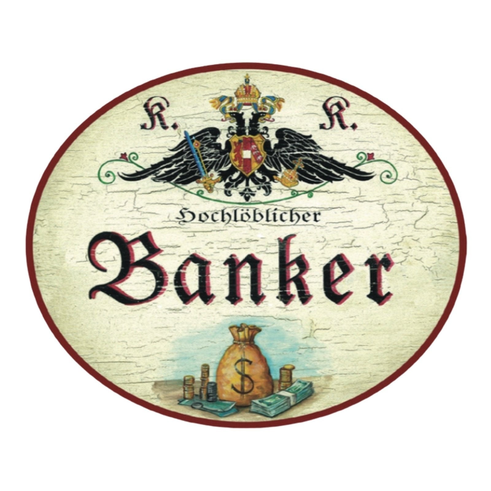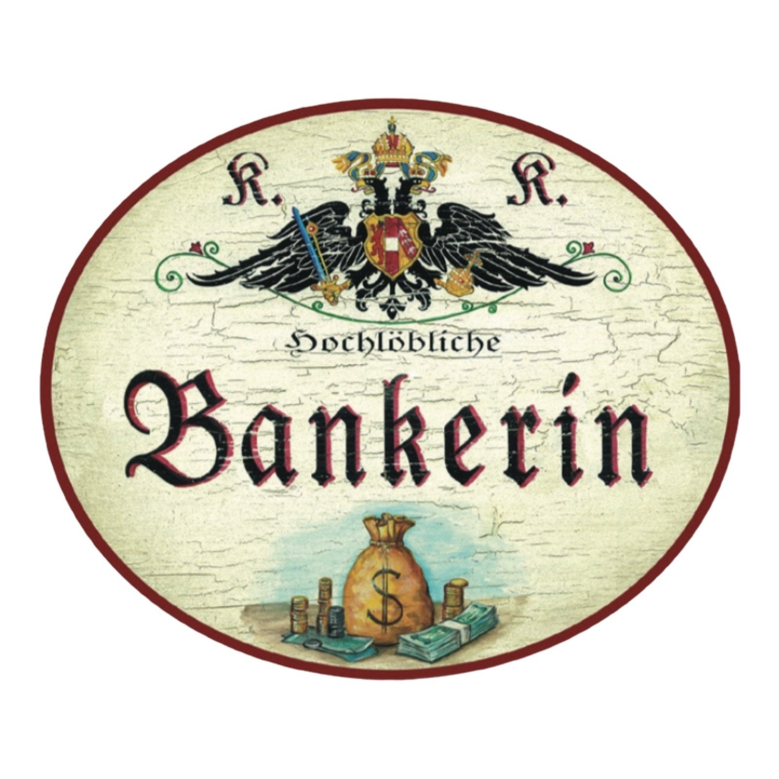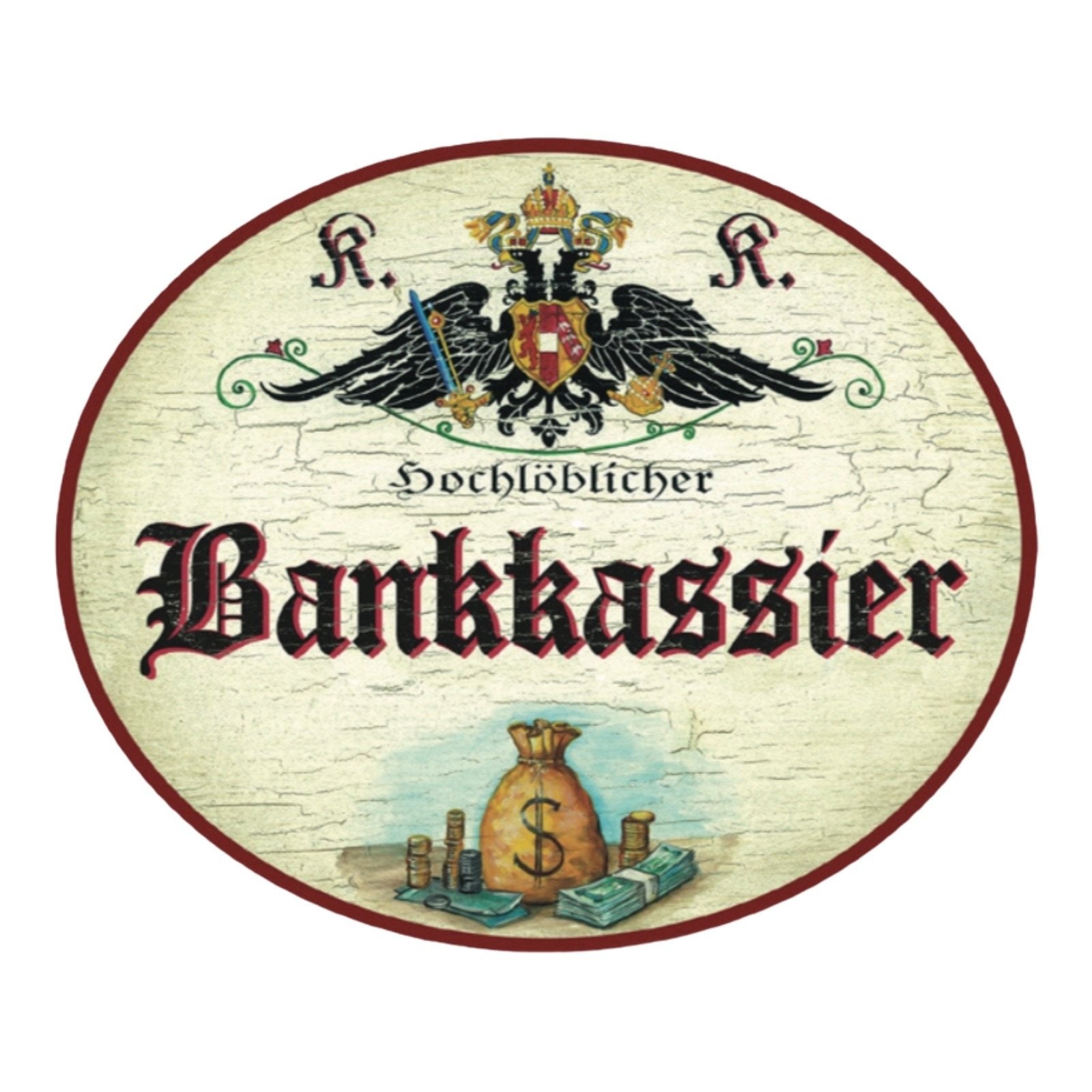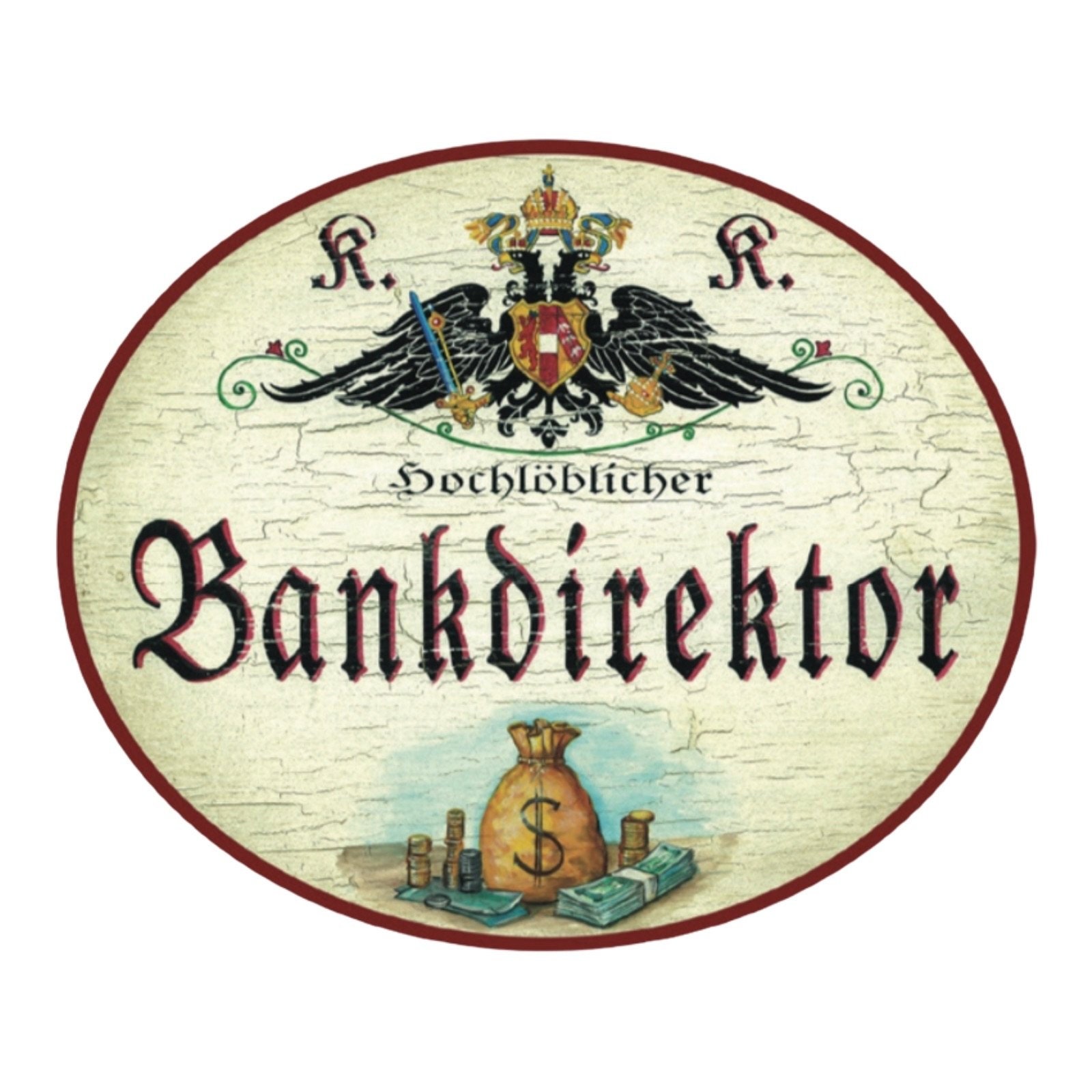 Dem Erbe der Monarchie verpflichtet und mit einem humorvollen Augenzwinkern setzen wir die Tradition der kaiserlich-königlichen Berufsschilder fort: Unter dem stolzen K&K Doppeladler der Monarchie beeindruckt ein Titel wie Hochlöbliche/r, Landesbefugte/r oder kaiserlich privilegierte/r kombiniert mit Berufen, Hobbys, Sport oder anderen Passionen, und einem dazu passendem Symbol oder Bildmotiv. Auf Wunsch mit Namen, Jahreszahlen, etc. personalisiert, sind diese Schilder ideale Geschenke für die zahlreiche Anlässe: die bestandene Gesellen- oder Meisterprüfung, Diplom, Berufsjubiläen oder zum Eintritt in den wohlverdienten Ruhestand. Das K&K Salzamt, alte Post- und Marineschilder runden das K&K Sortiment ab.
