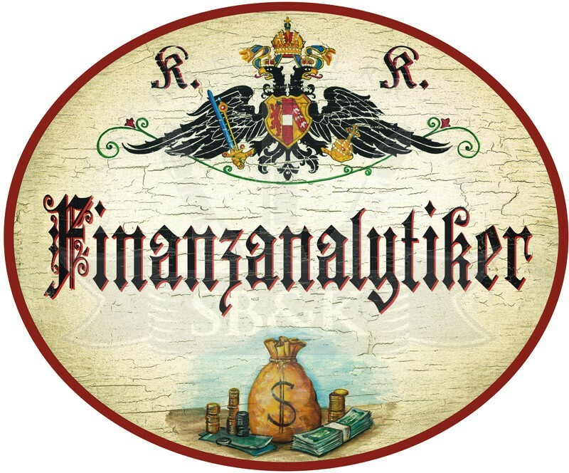 KuK Nostalgie Holzschild - Finanzanalytiker - Geldsack TH