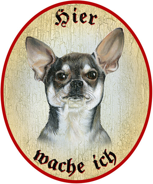 KuK Nostalgie Holzschild "Hier wache ich" Chihuahua Hund
