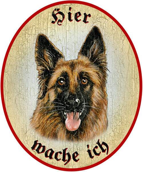 KuK Nostalgie Holzschild "Hier wache ich" Deutscher Schäferhund